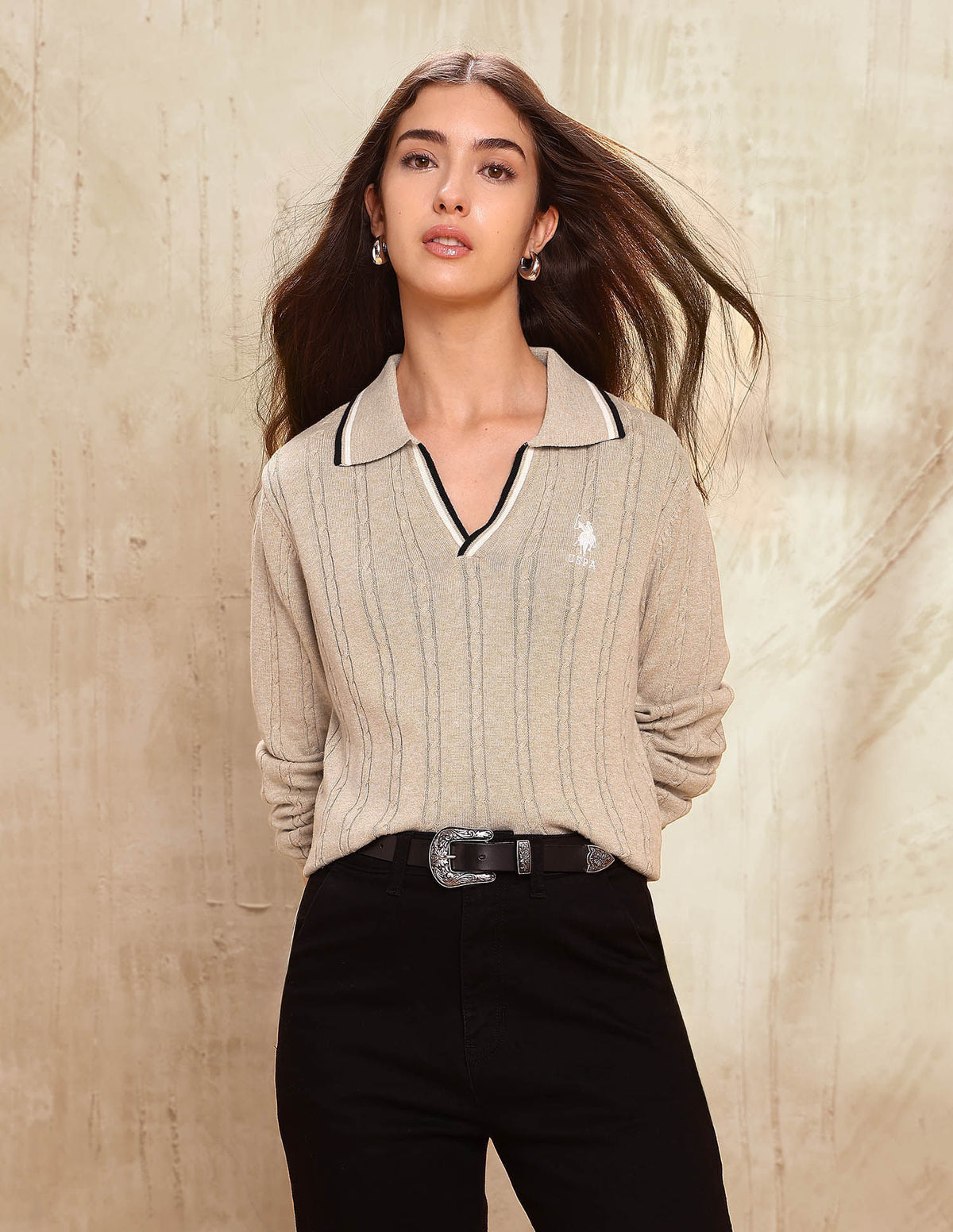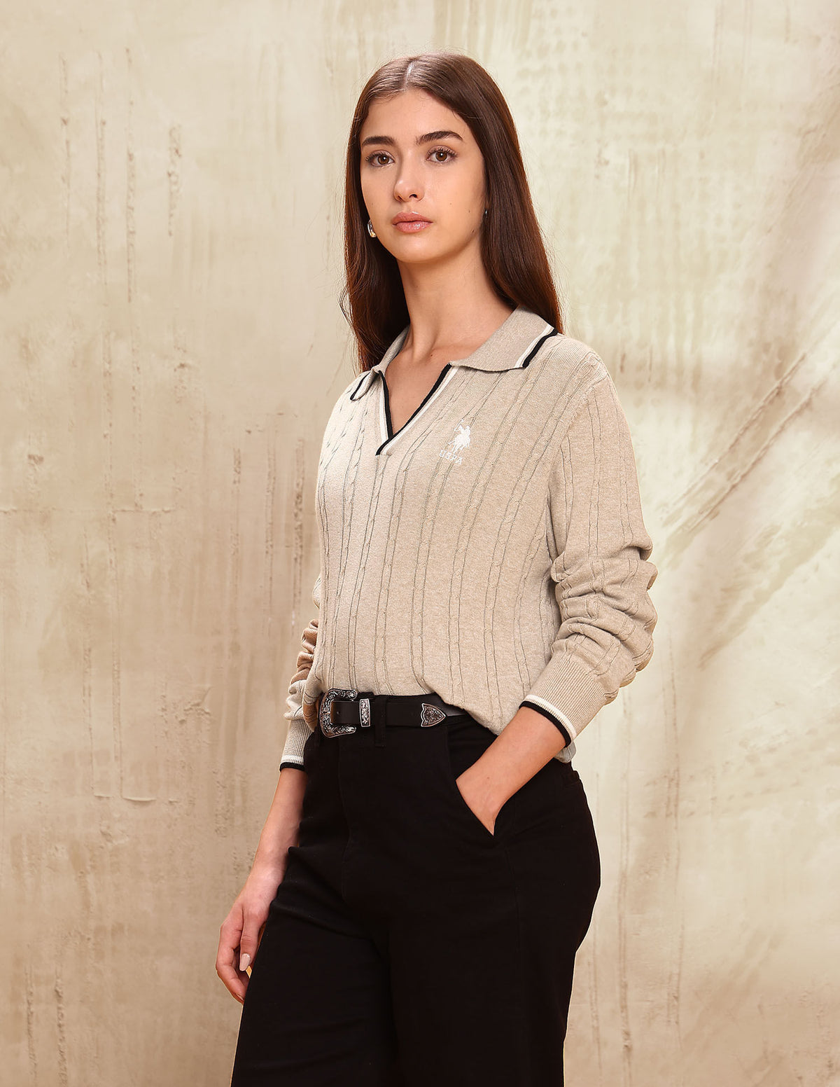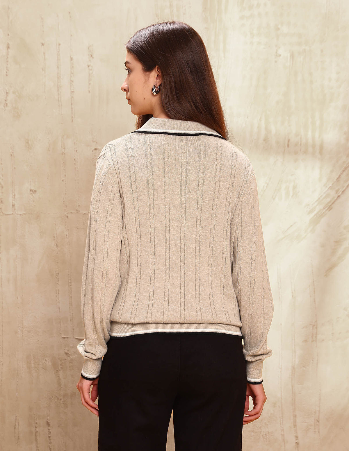 | Polo collar | Logo at chest | Long sleeves | Ribbed neck, sleeve hems and hemline | Textured pattern | Knitted | Regular fit |
