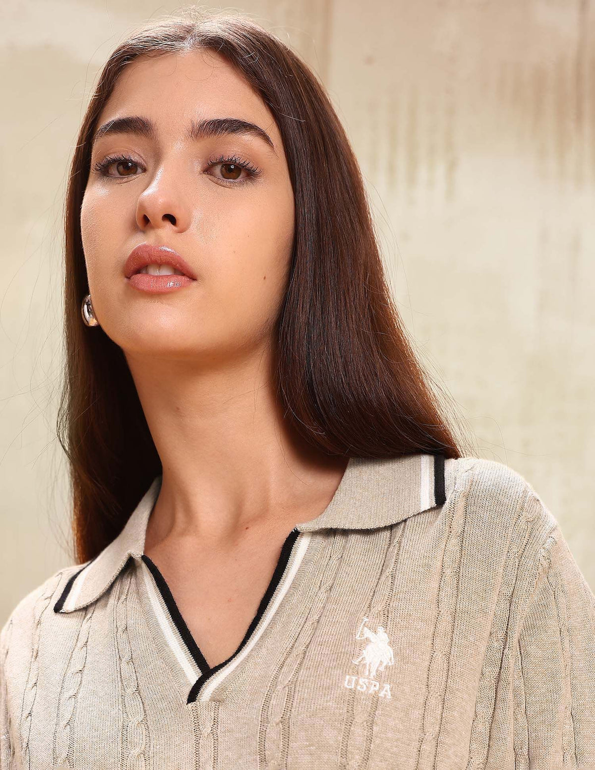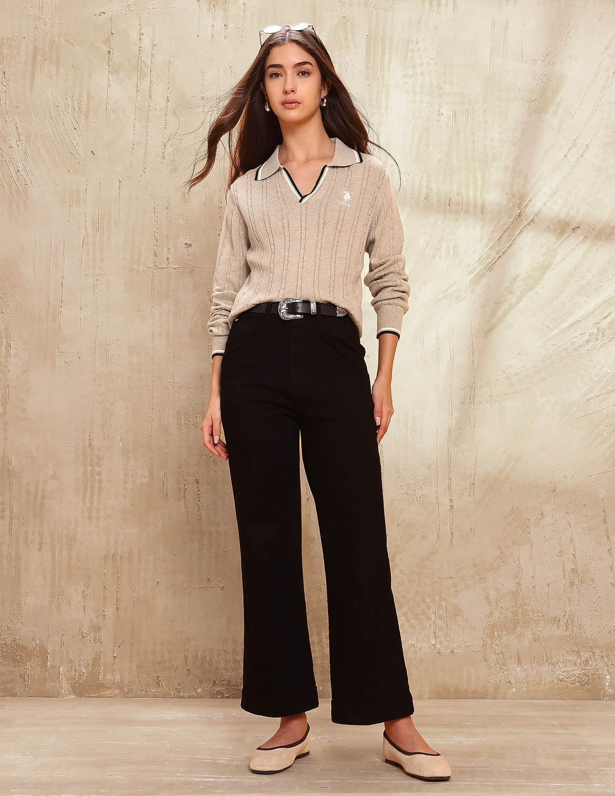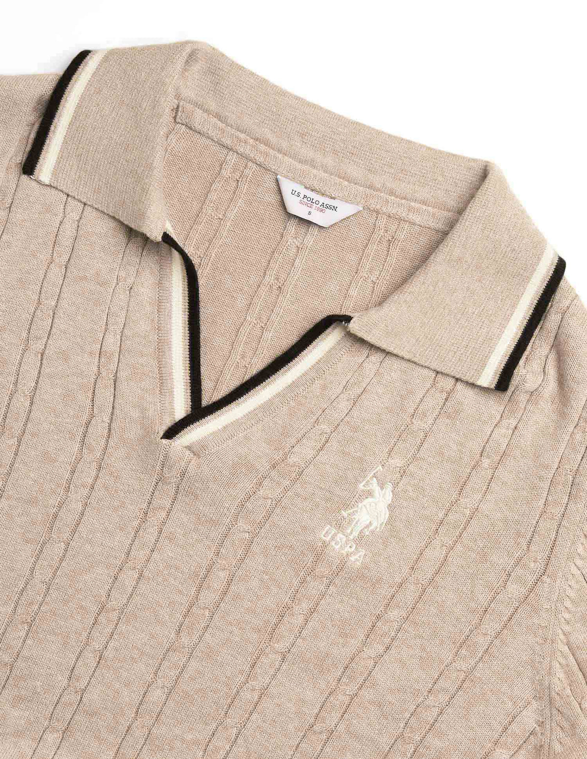 | Polo collar | Logo at chest | Long sleeves | Ribbed neck, sleeve hems and hemline | Textured pattern | Knitted | Regular fit |