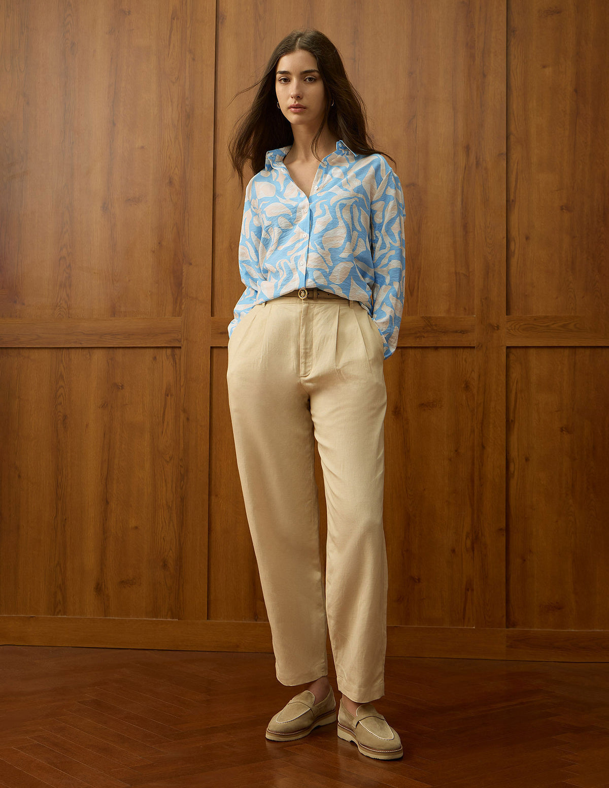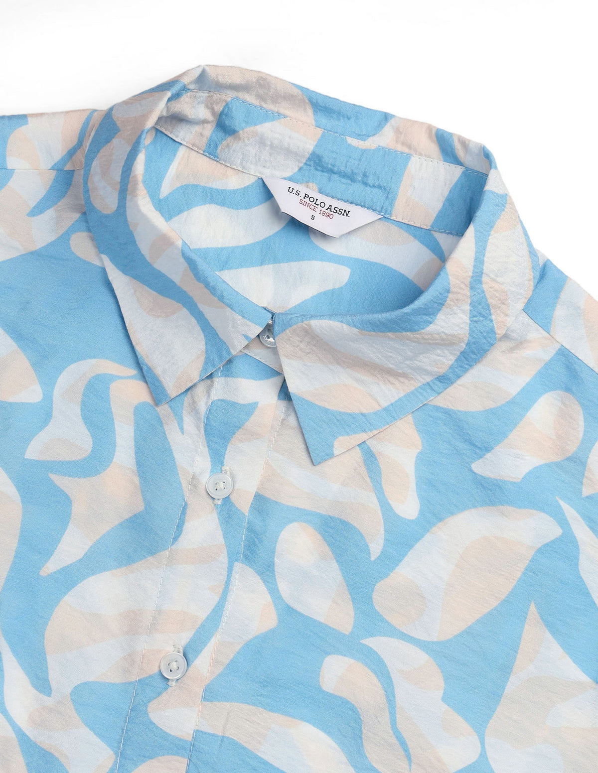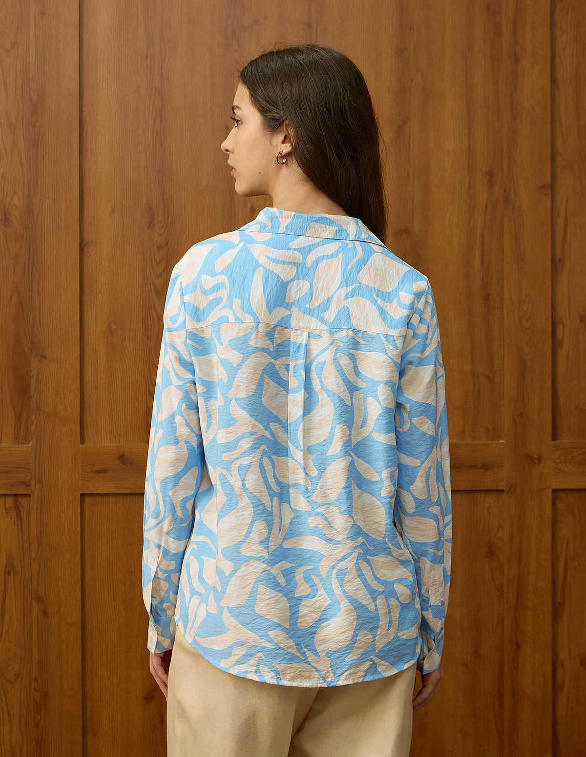 | Spread collar | Logo at chest | Full button placket | Long sleeves with barrel cuffs | Curved hemline | Abstract printed pattern | Regular weave | Regular fit |