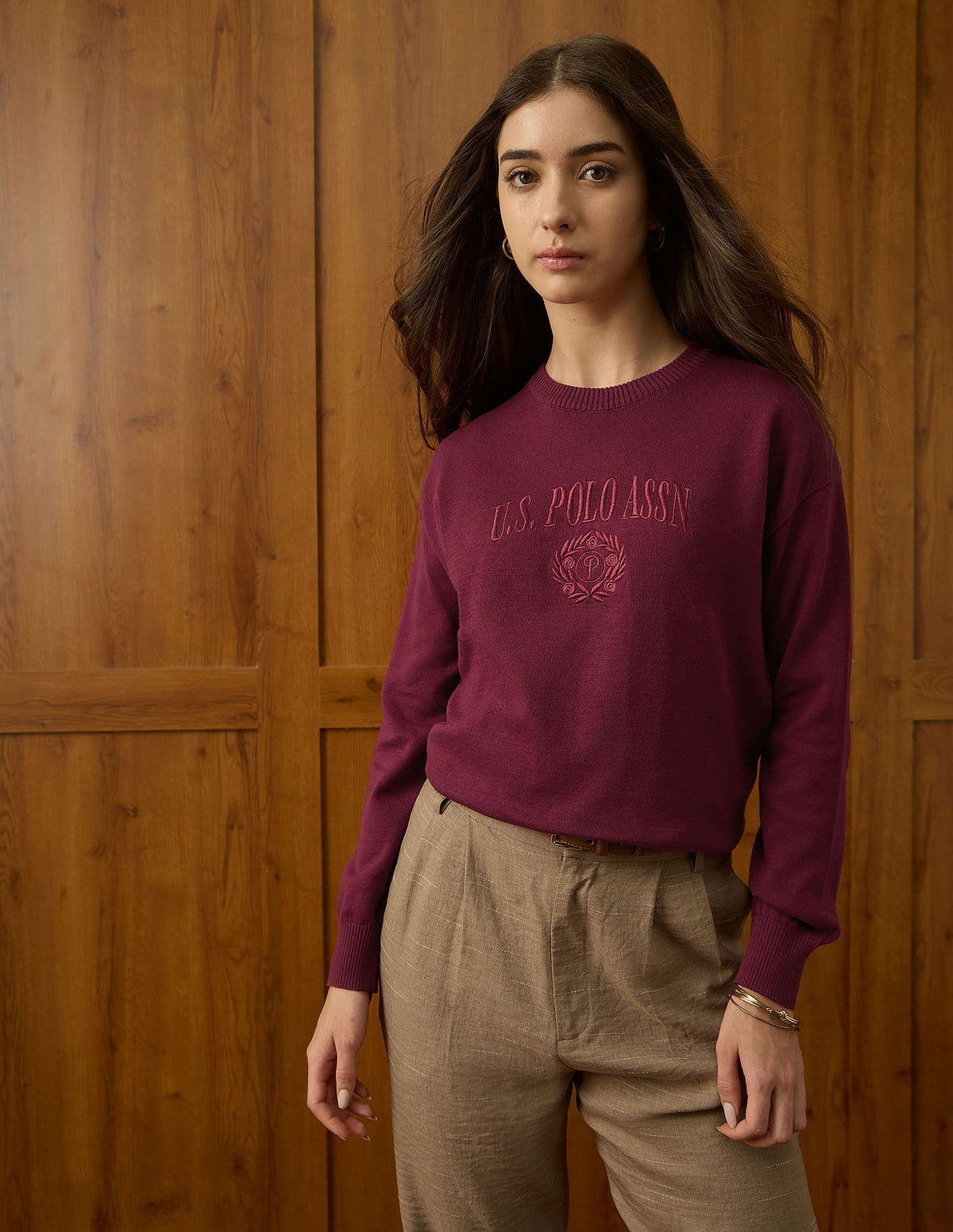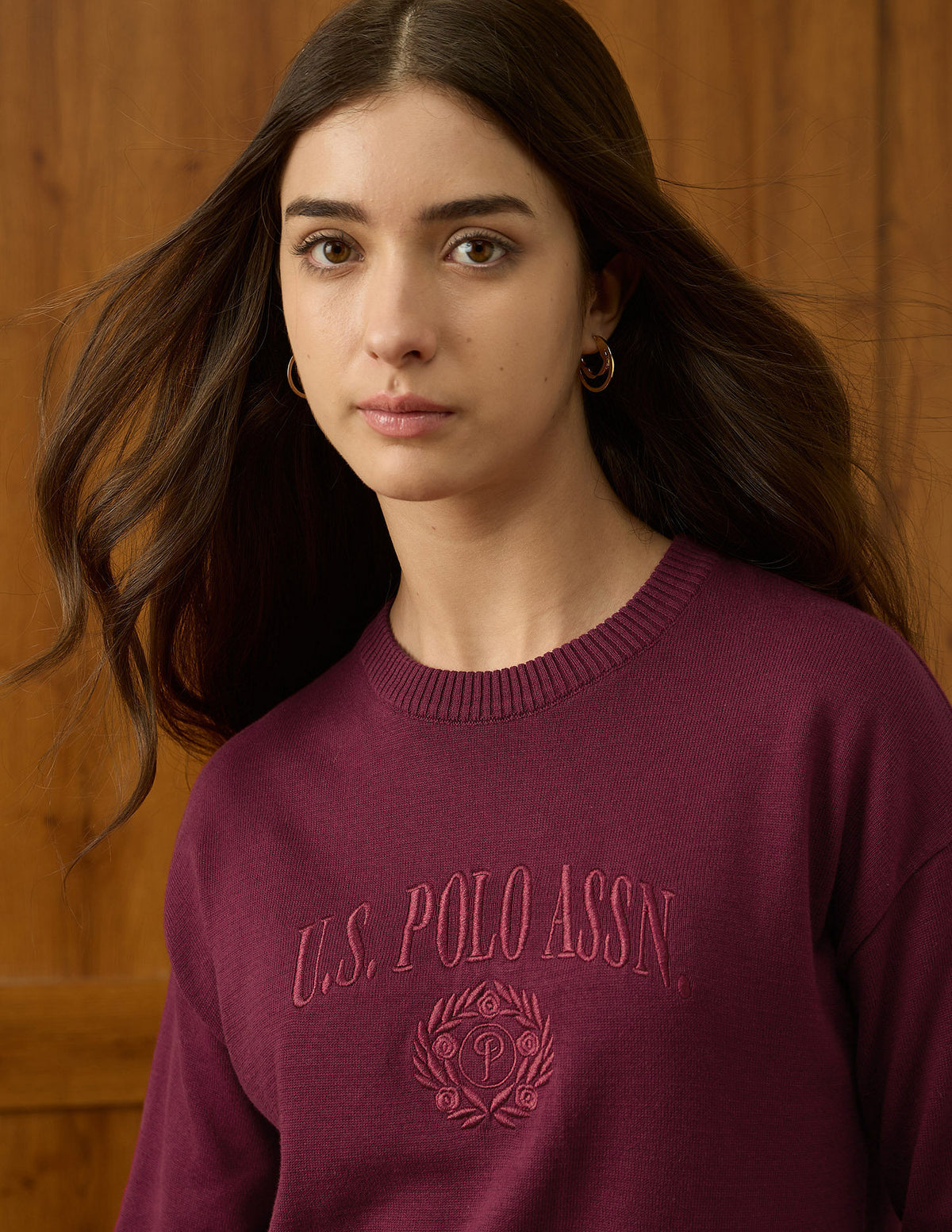 | Crew neck | Long sleeves | Ribbed sleeve hems and hemline | Brand embroidered pattern | Knitted | Relaxed fit |