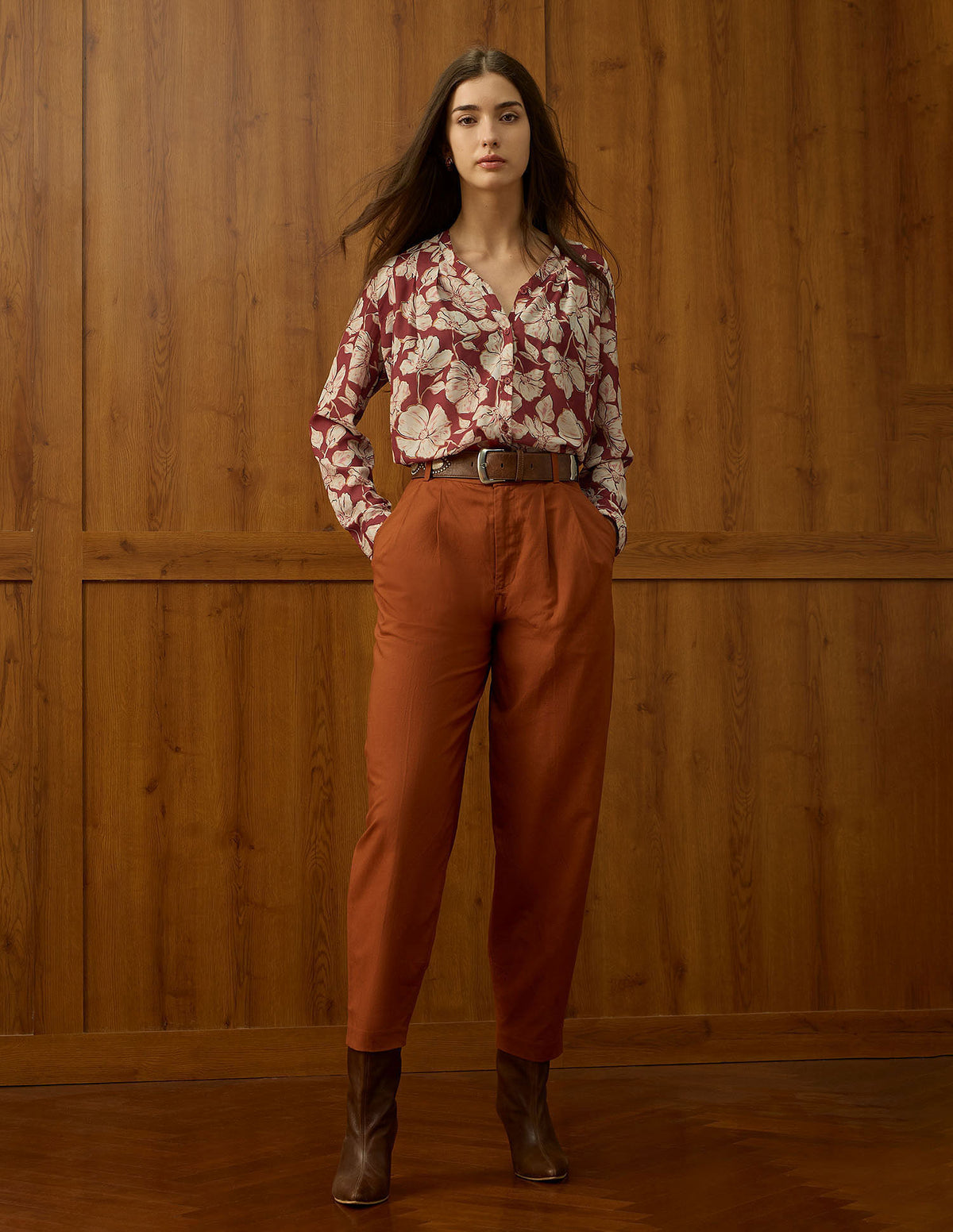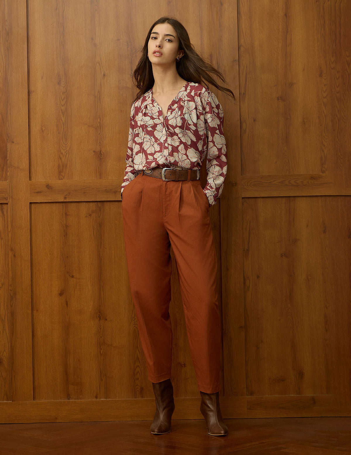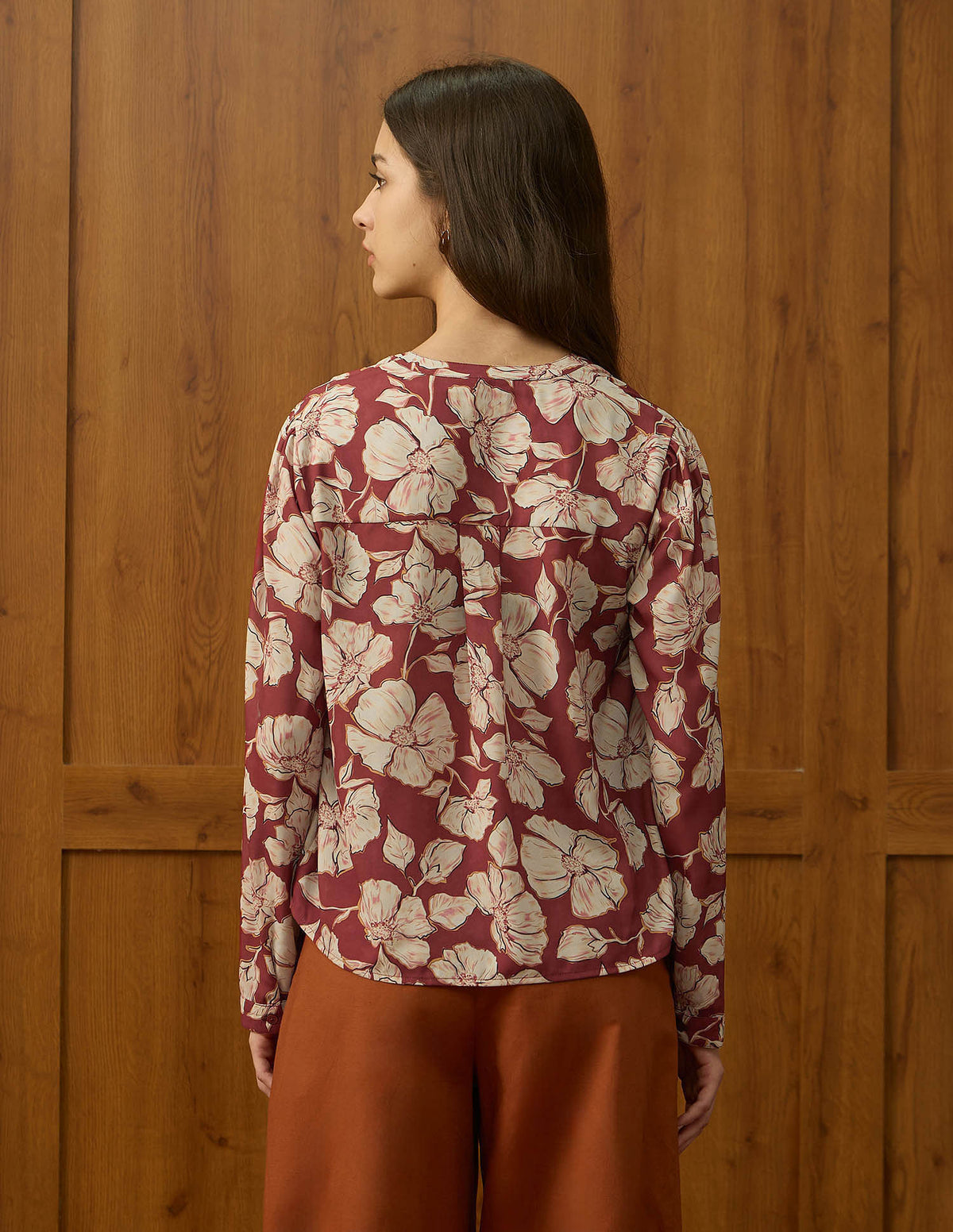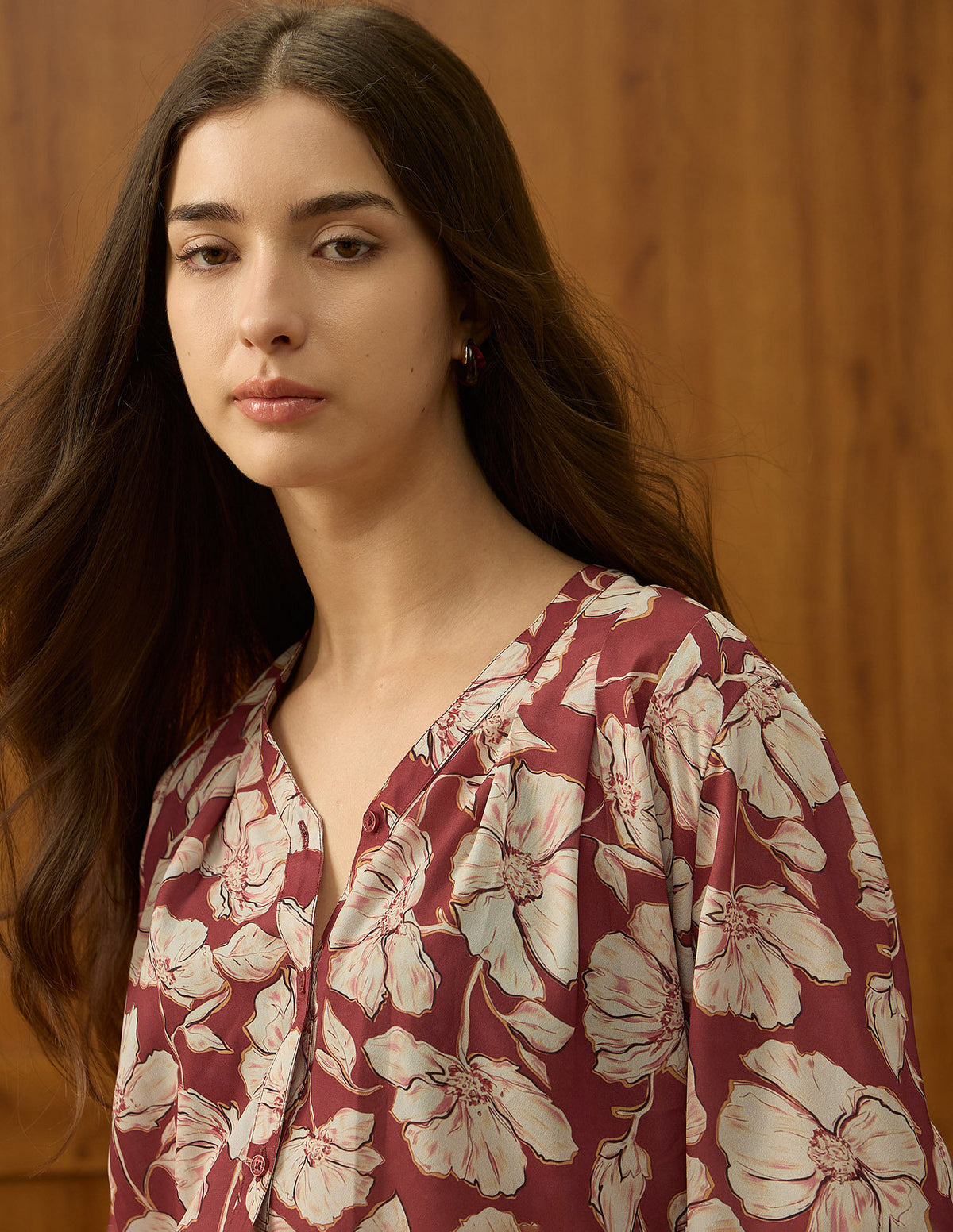 | V-neck | Long sleeves with elasticized hems | Straight hemline | Floral printed pattern | Regular weave | Relaxed fit |