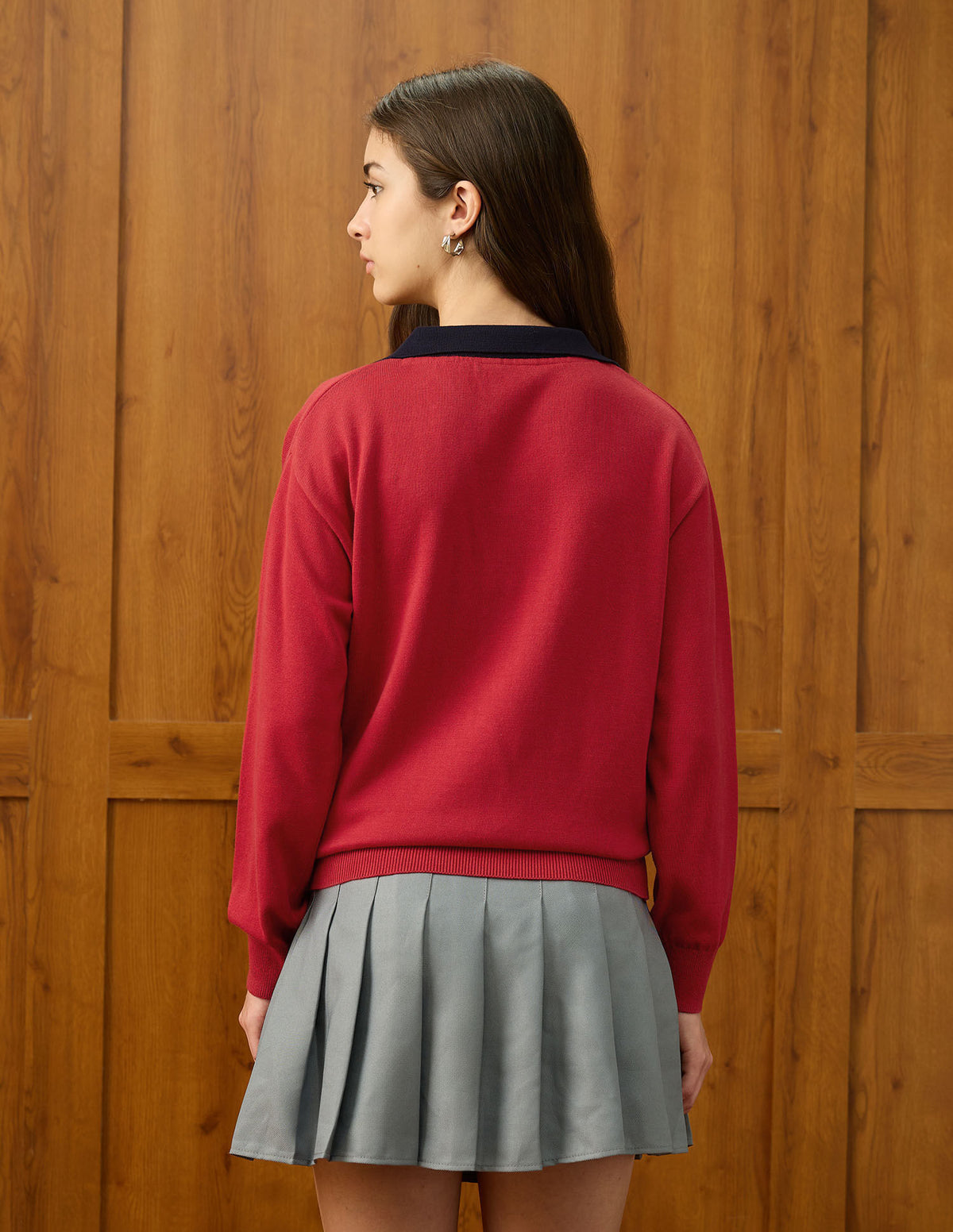 | Polo collar | Logo at chest | Long sleeves | Ribbed neck, sleeve hems and hemline | Solid pattern | Knitted | Relaxed fit |