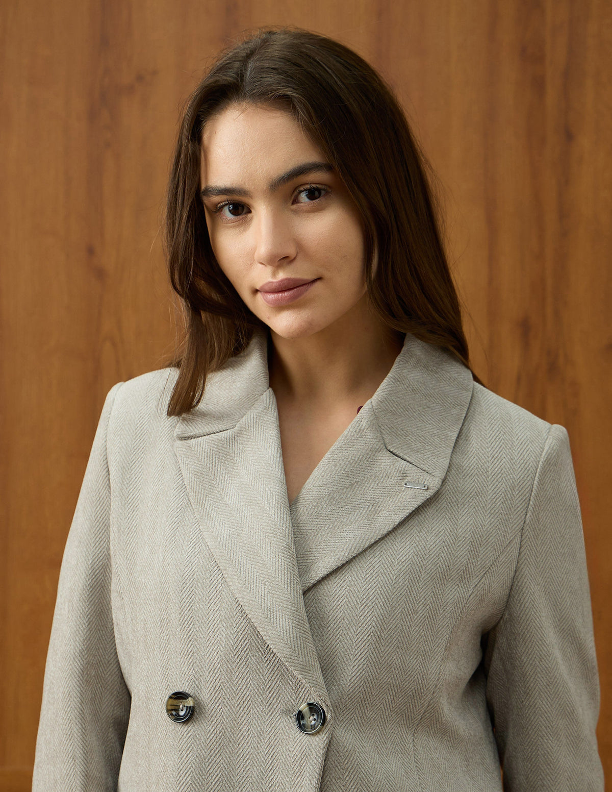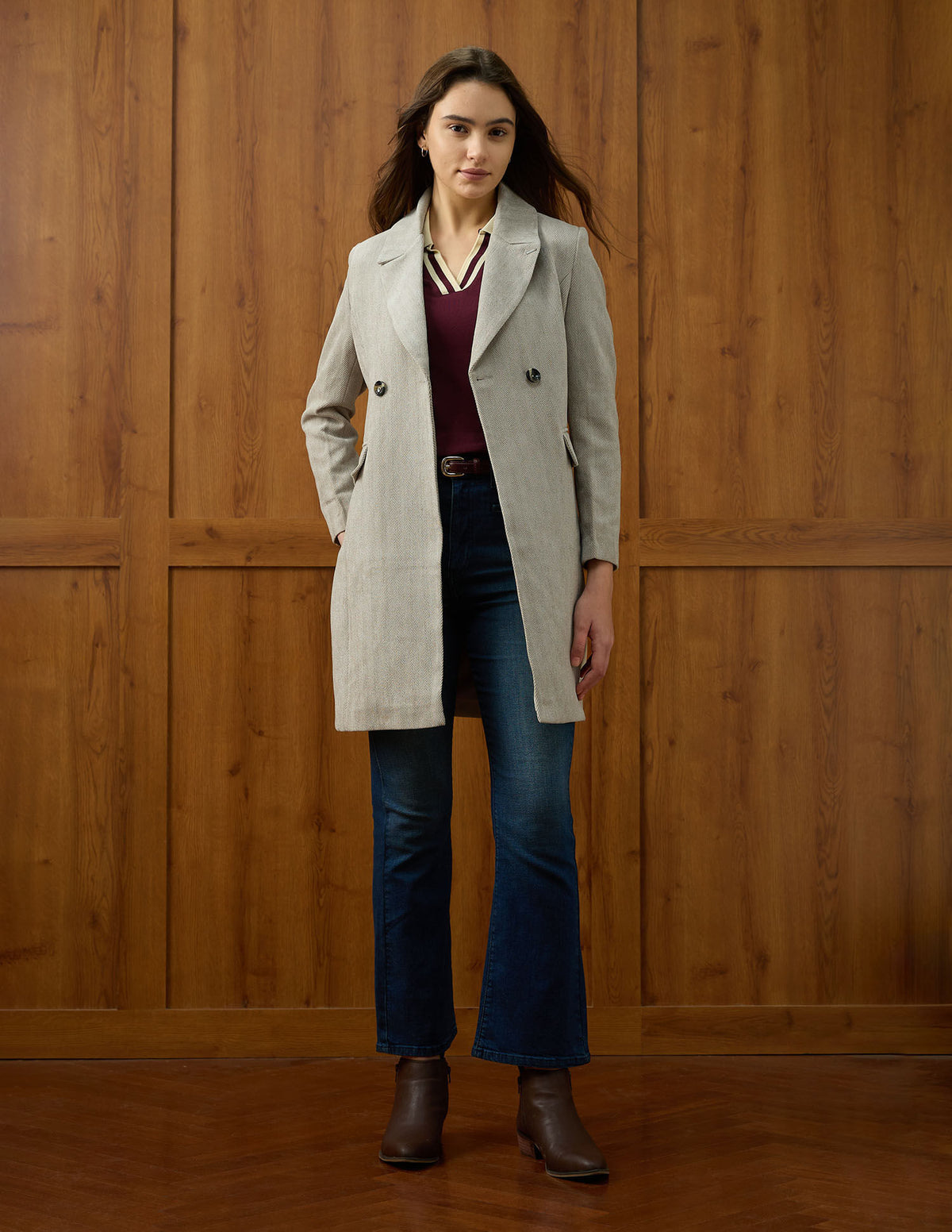 | Notch lapel collar | Double breasted | Long sleeves | Straight hem | Solid pattern | Regular fit |