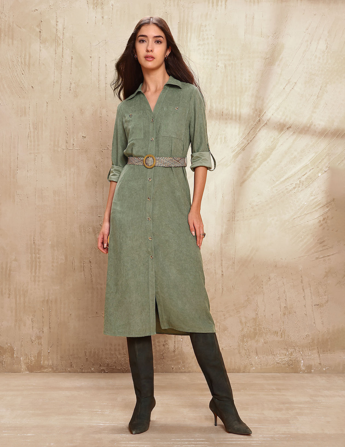 | Shirt collar | Full button placket | Short sleeve | Solid pattern |