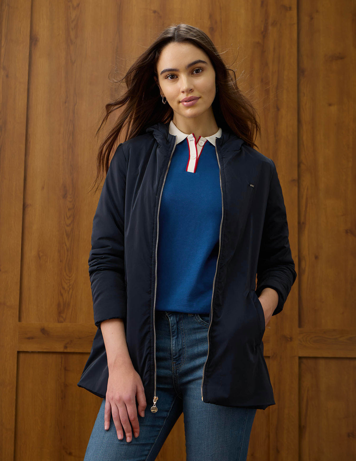 | Hooded | Full zipper closure | Long sleeves | Elasticized sleeve hems and hemline | 2 pockets | Solid pattern | Regular fit |