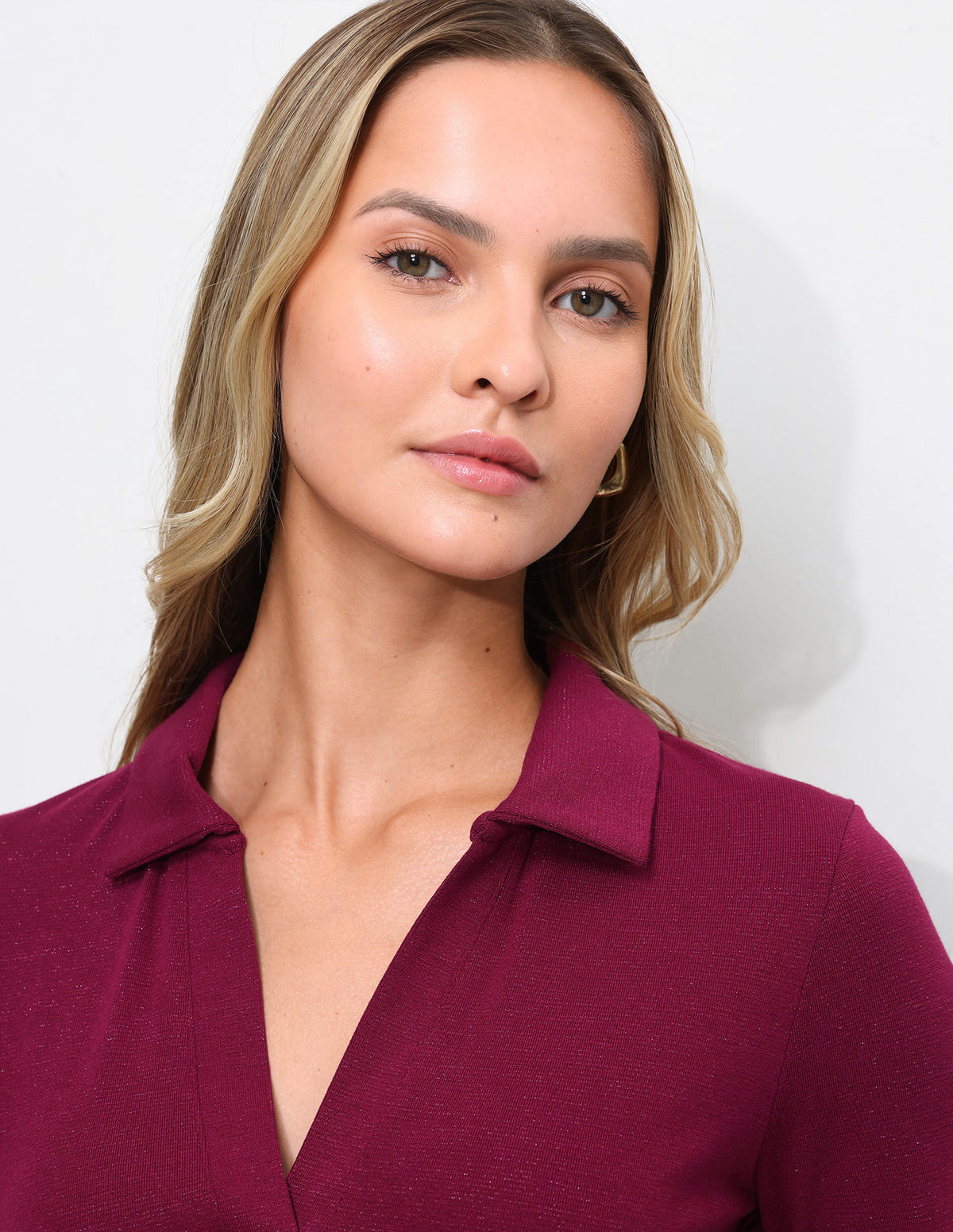 | Polo collar with v-neck | Short sleeves | Even vented hem | Solid pattern | Pique knit | Regular fit