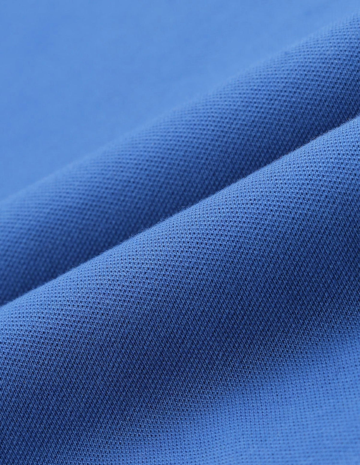 | Polo collar | Logo at chest | Open placket | Short sleeves | Ribbed collar and sleeve hems | Uneven vented hem | Solid pattern | Pique knit | Regular fit |