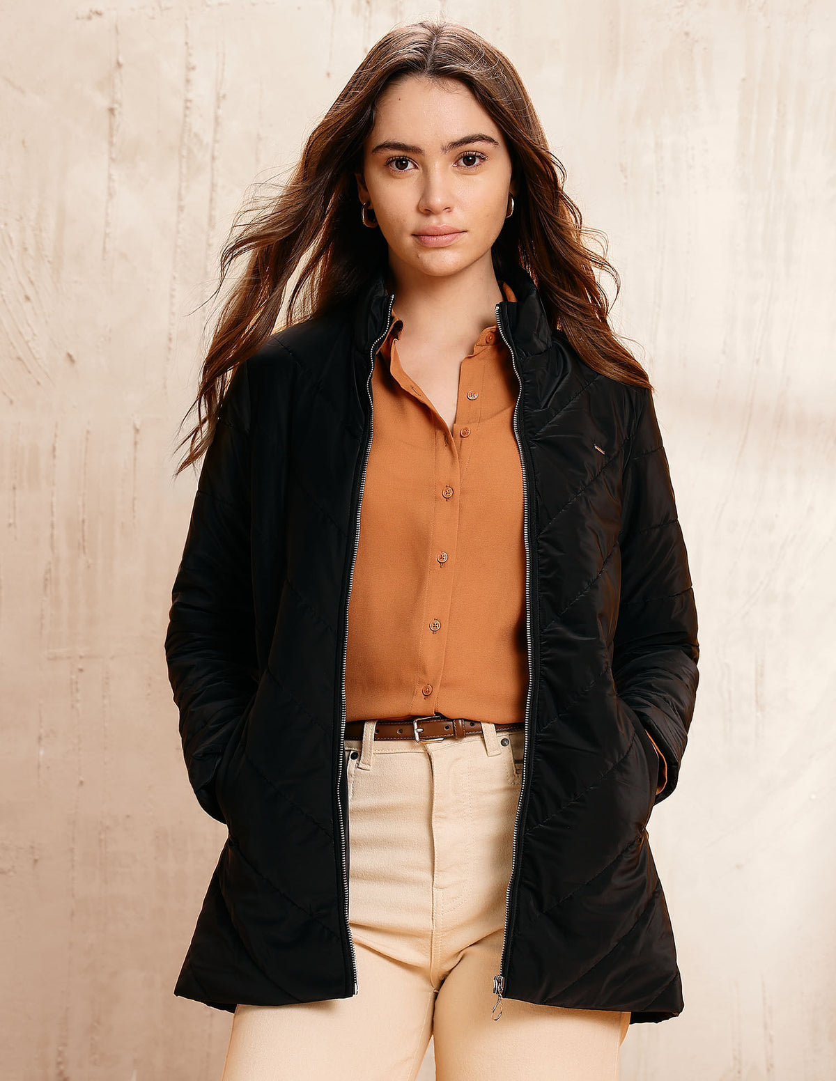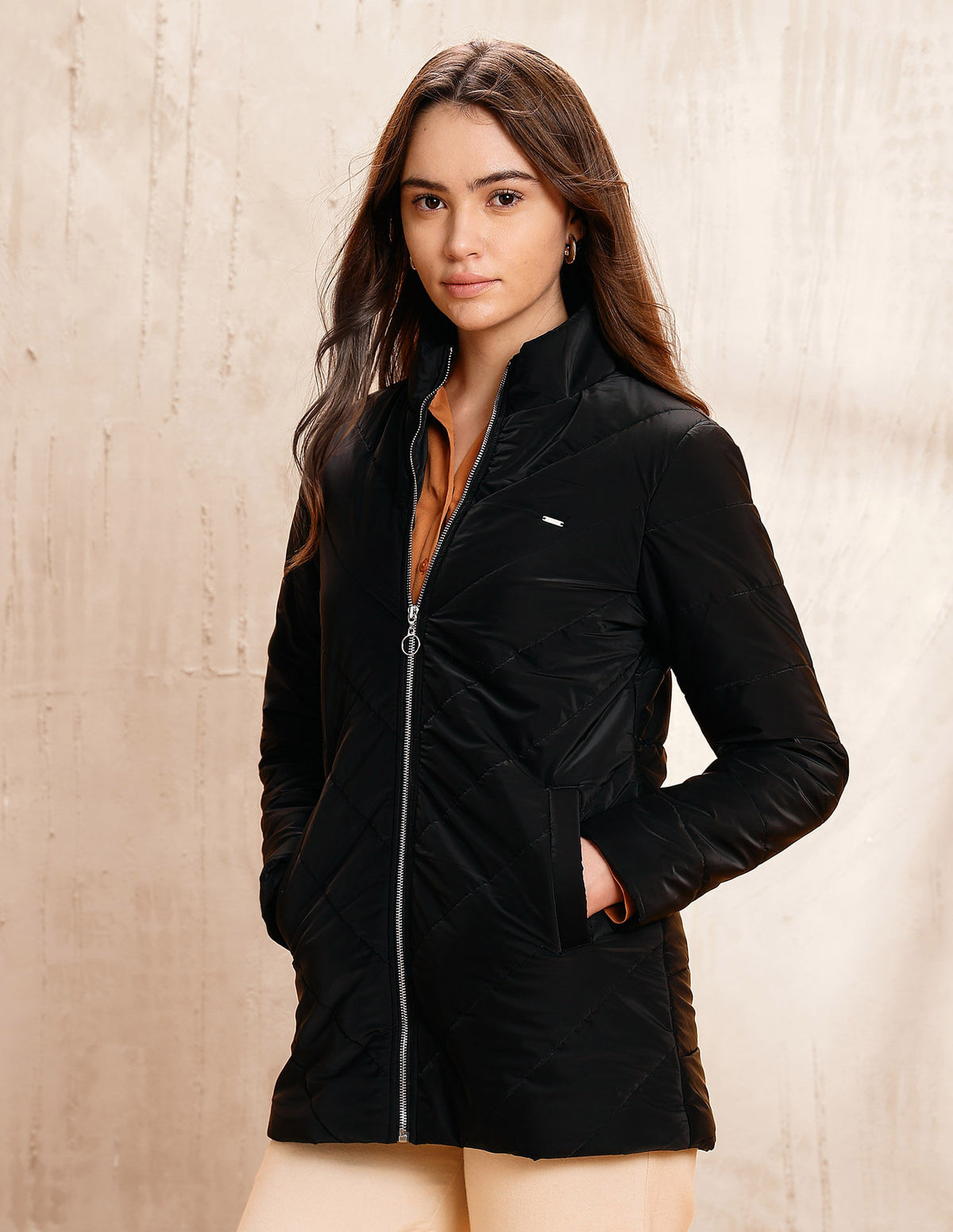 | Stand collar | Full zipper closure | Long sleeves | Logo at chest |2 pockets | Solid pattern | Regular fit |