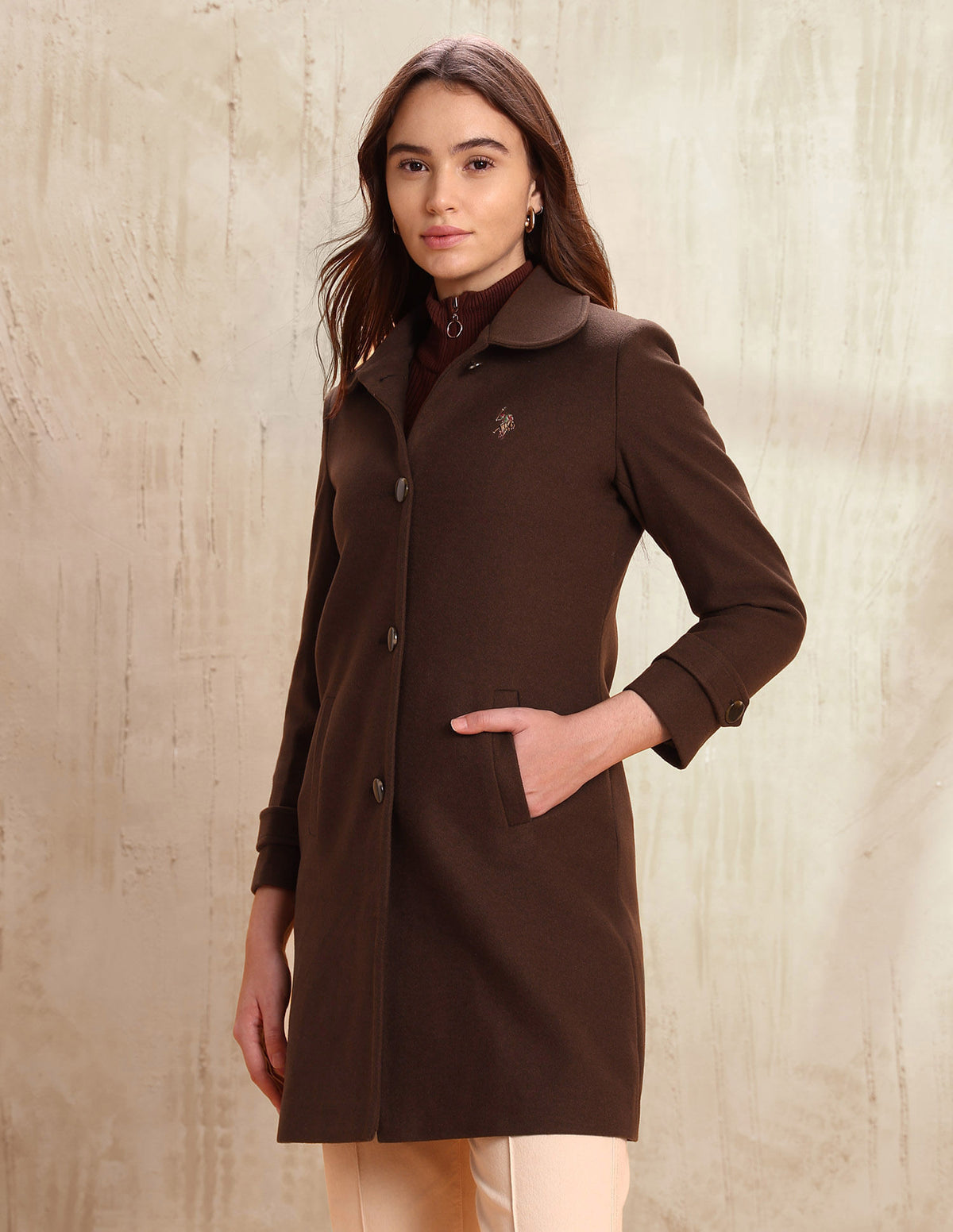 | Notch lapel neck | Button closure | Long sleeves | Elasticized sleeve hems and hemline | 2 pockets | Solid pattern | Regular fit |
