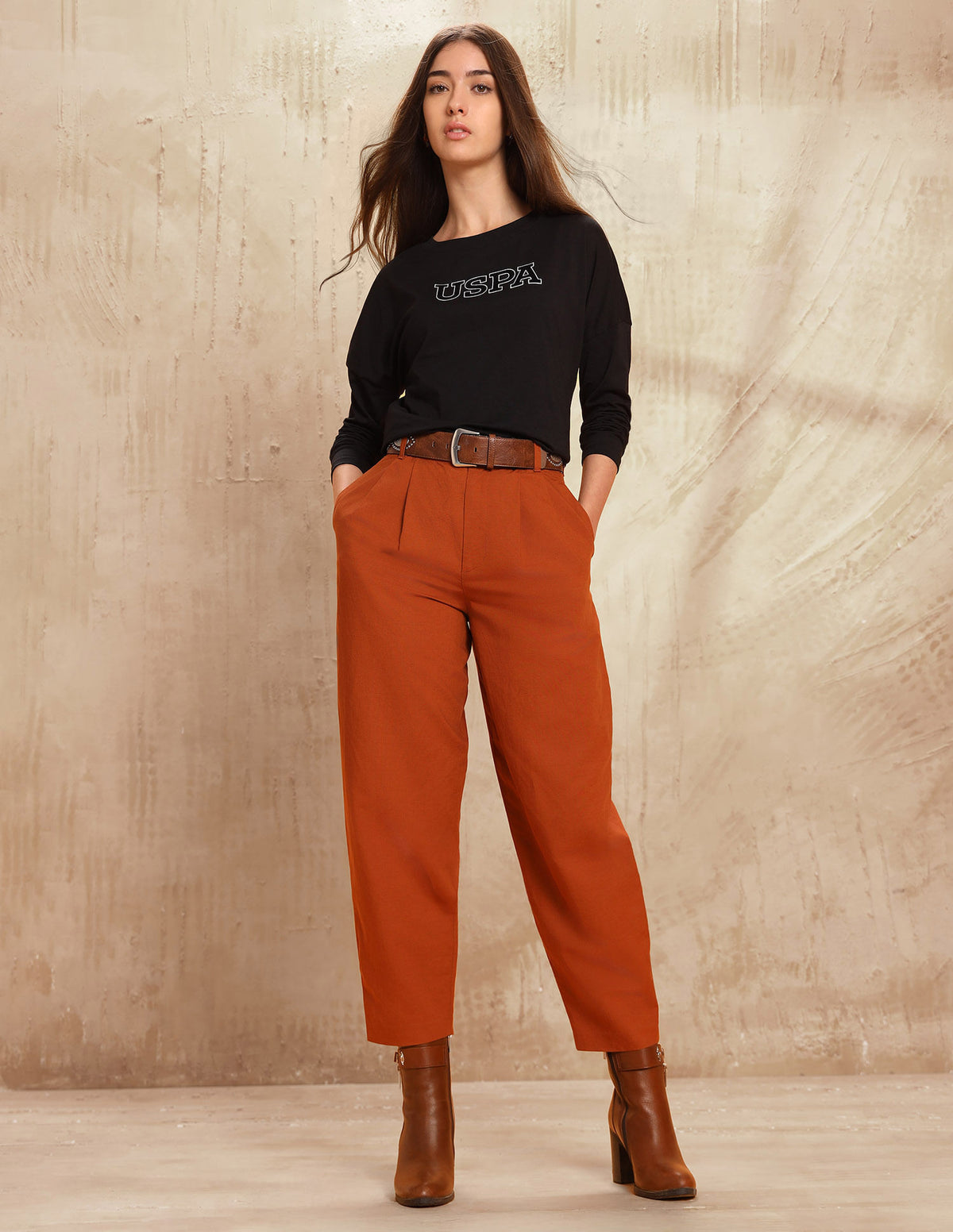 Story: Reimagining classic Western aesthetics, this group channels rugged looks with utilitarian details, energized by earthy colors. Drawing inspiration from nature’s ruggedness along with equestrian influences, it infuses a sense of adventure and functionality into the U.S. Polo Assn. brand. intermingle with textural fabrics to evoke the rugged beauty of the landscape. Integrating elements that evoke the sport of polo adds an athletic edge to the energetic charm, creating a dynamic fusion of style and performance. An ideal choice for the fashion-forward woman who appreciates both style and comfort. Pair with your favorite jeans or a casual skirt for a look that's both polished and relaxed, ready to take on any casual occasion with confidence.