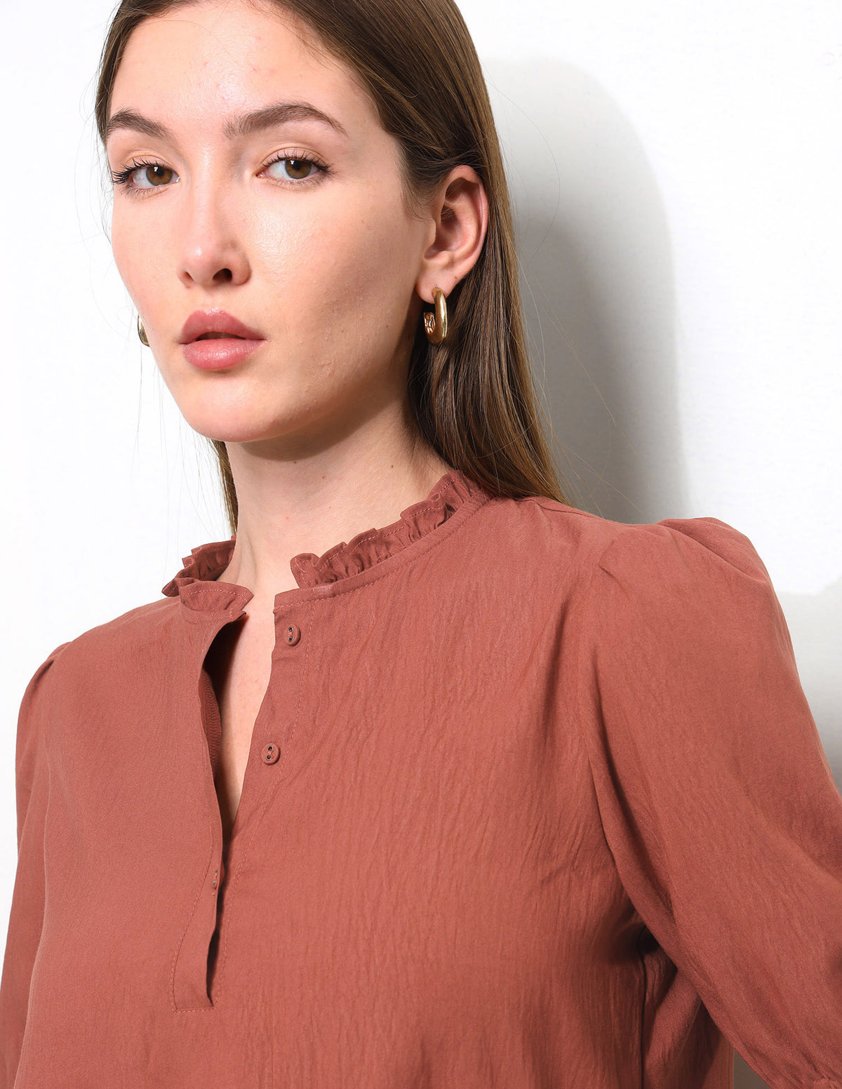 - Ruffle at neck