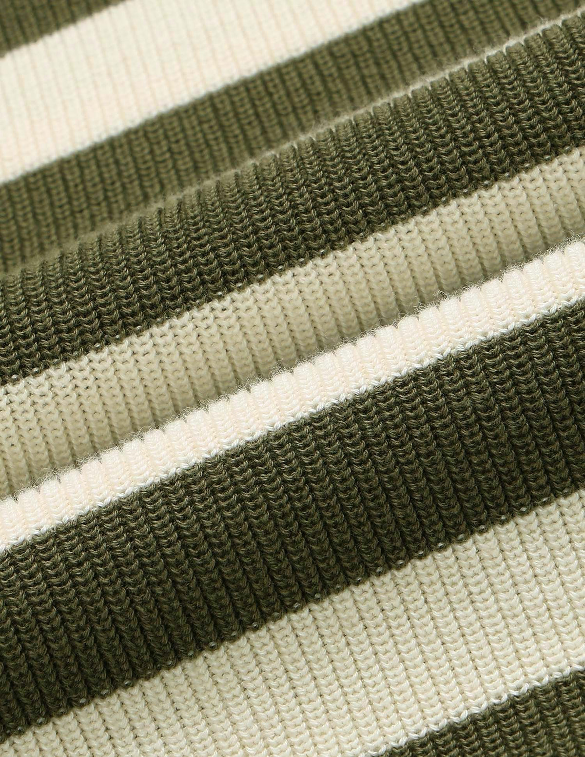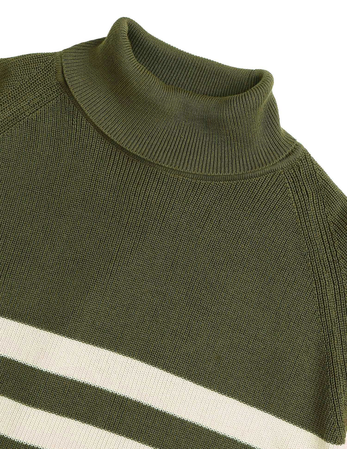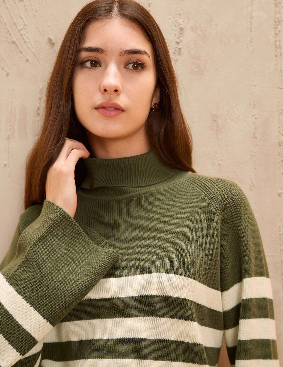 | High neck | Logo at chest | Long sleeves | Ribbed neck, sleeve hems and hemline | Horizontal striped pattern | Knitted | Relaxed fit |
