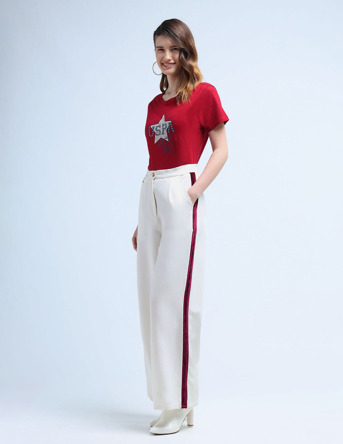 | Ribbed crew neck | Short sleeves | Straight hem | Brand printed pattern | Knitted | Regular fit
