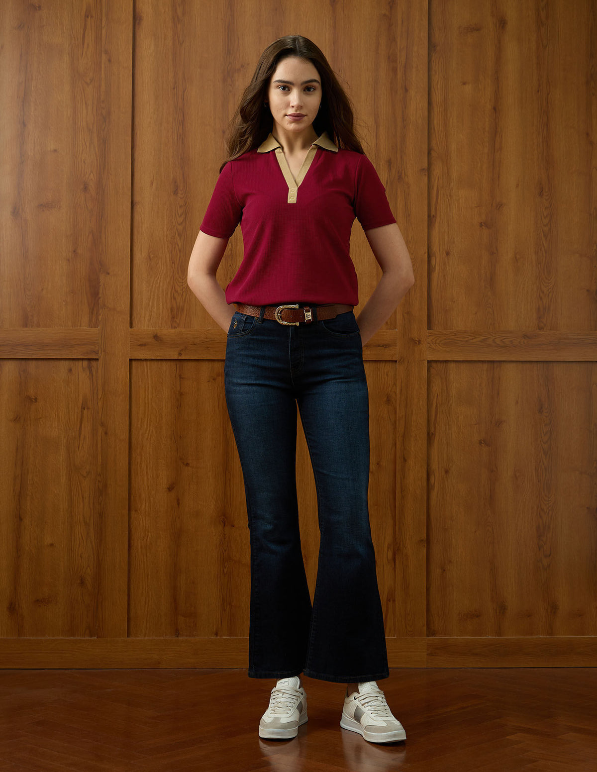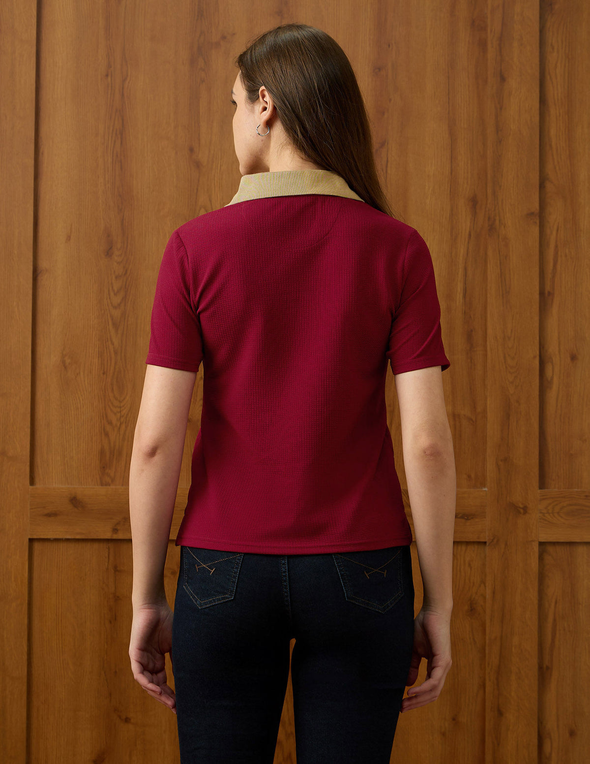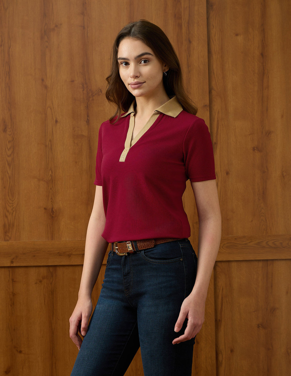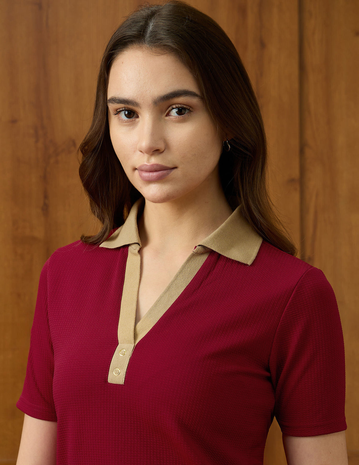 | Polo collar | Short sleeves | Contrast collar | Even vented hem | Textured pattern | Pique knit | Regular fit |