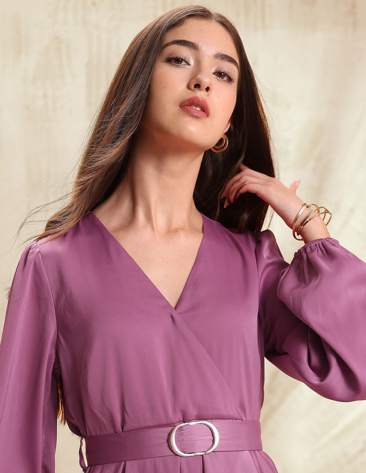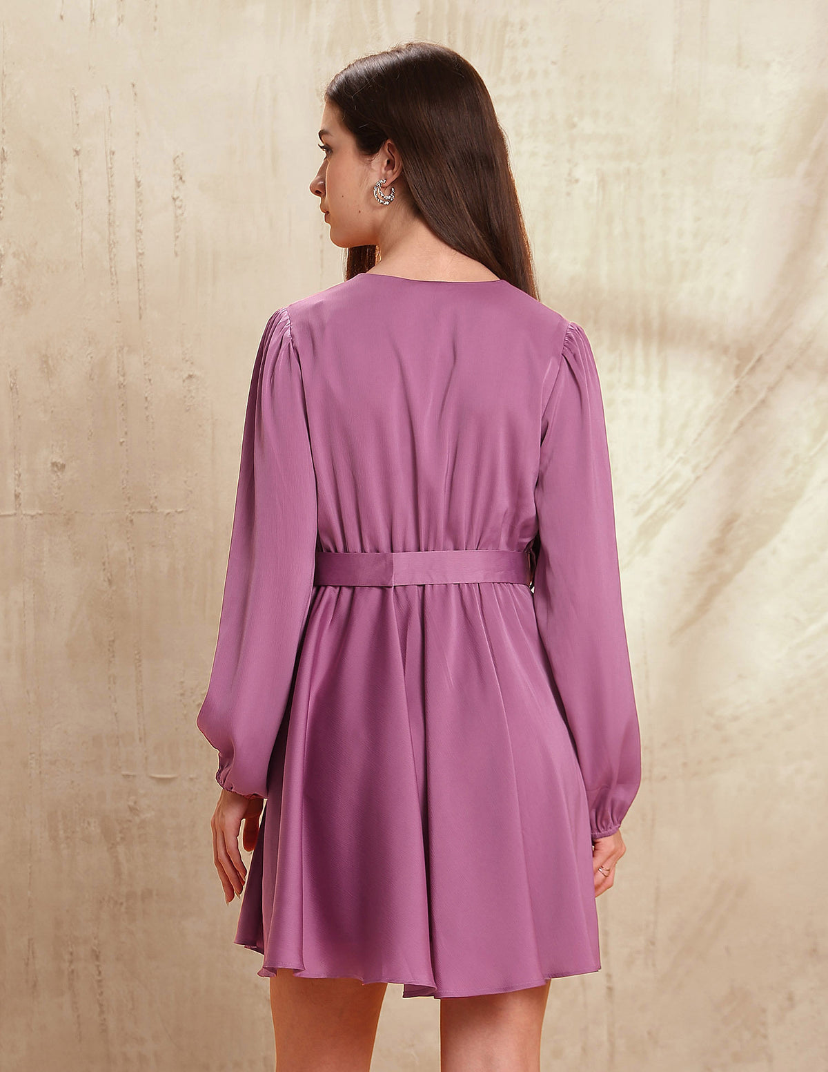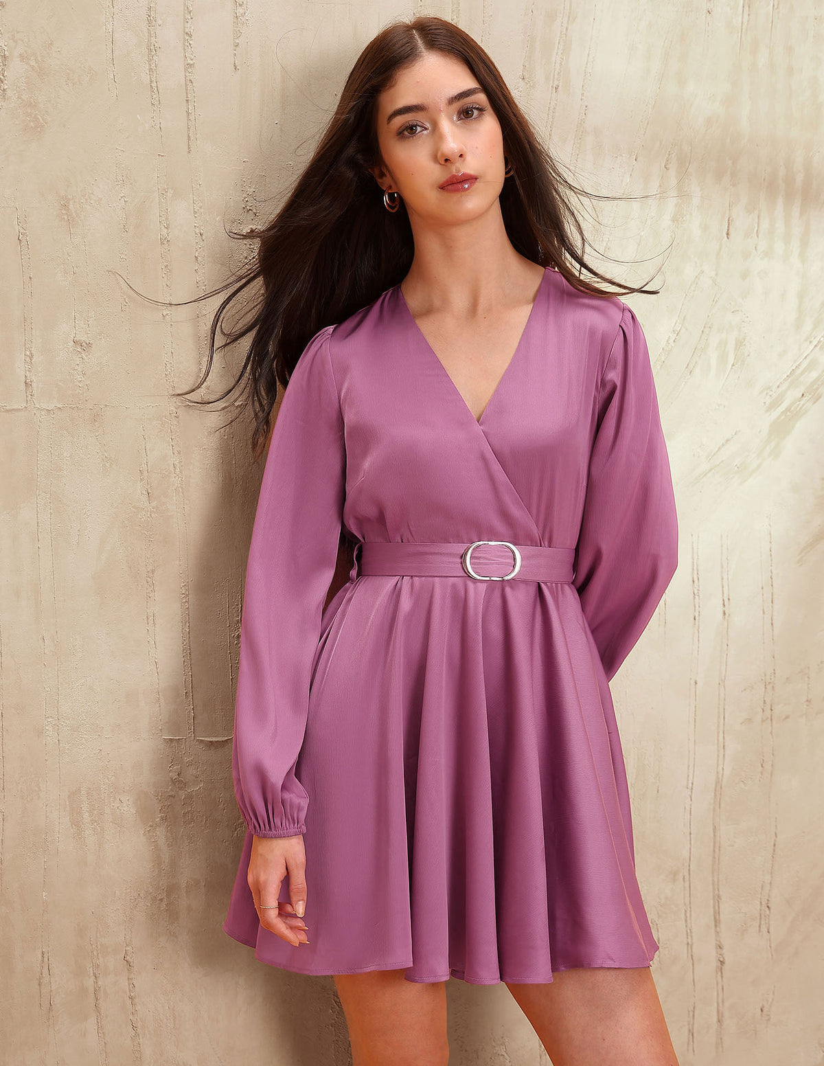 | V-neck | Long sleeve | Textured pattern | Mini length |