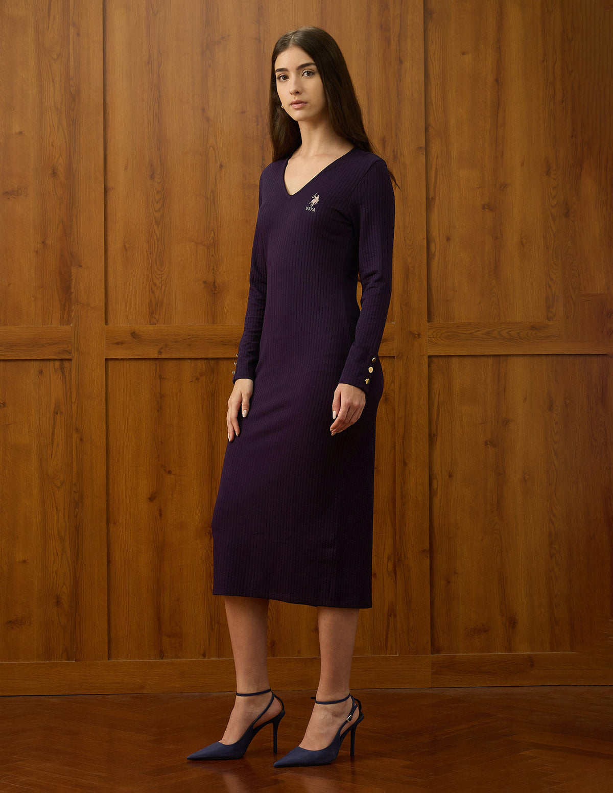| V-neck | Long sleeve | Textured pattern | Regular fit |
