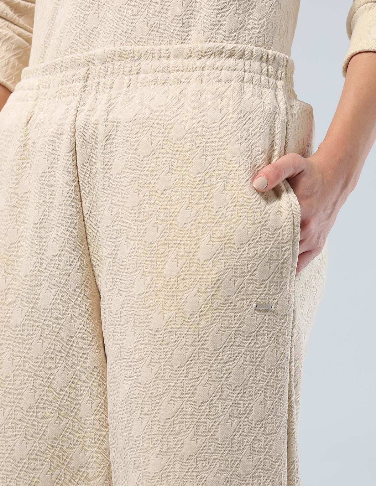 | Mid-rise waist | Slip-on closure | 2 pockets | Flat front | Textured pattern | Regular weave | Regular fit |