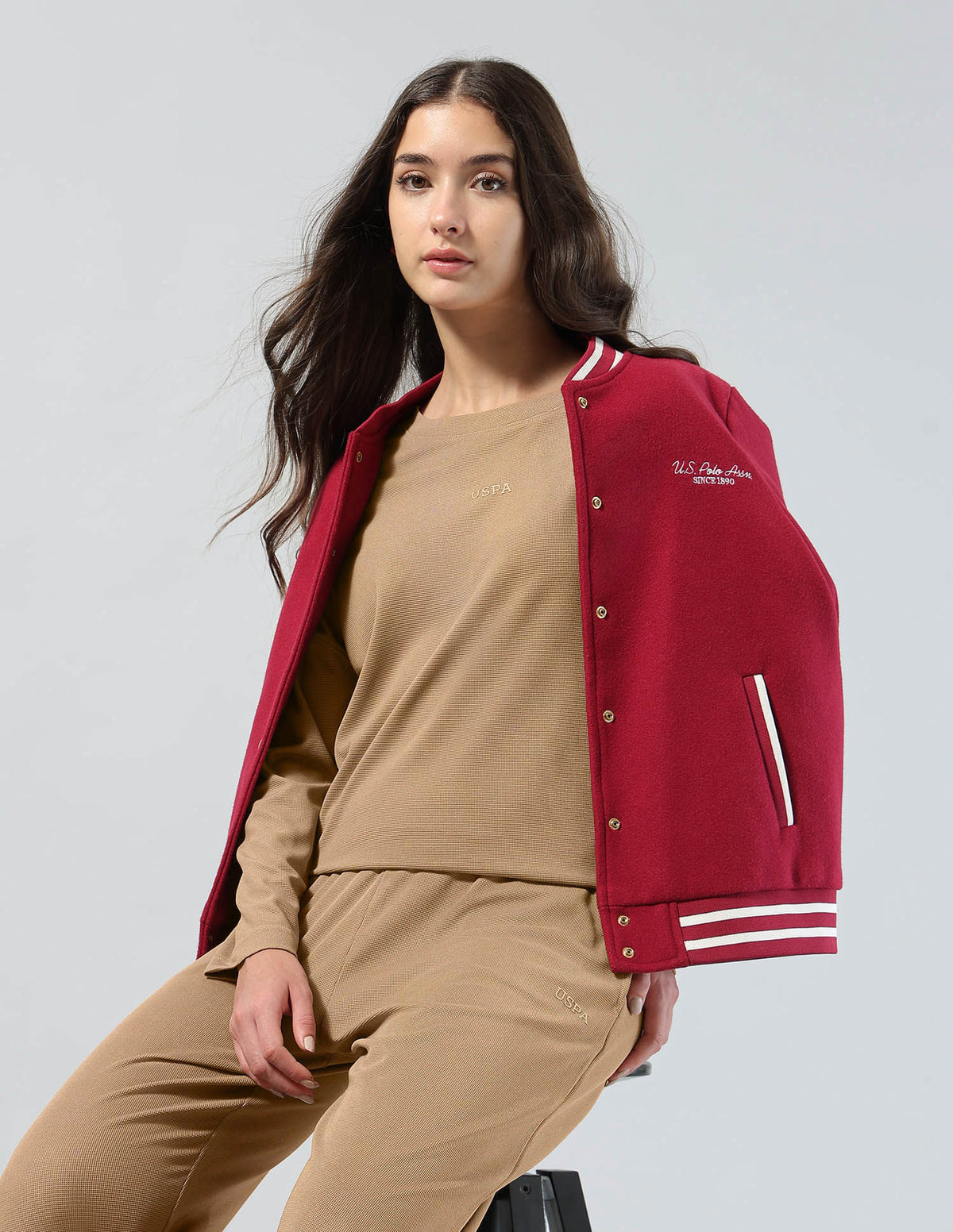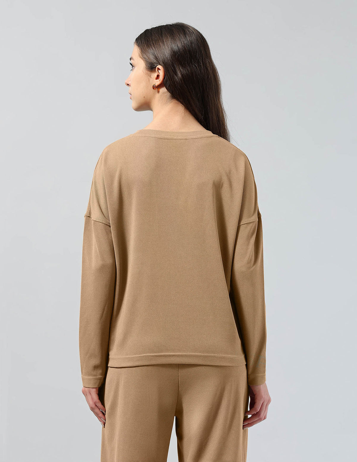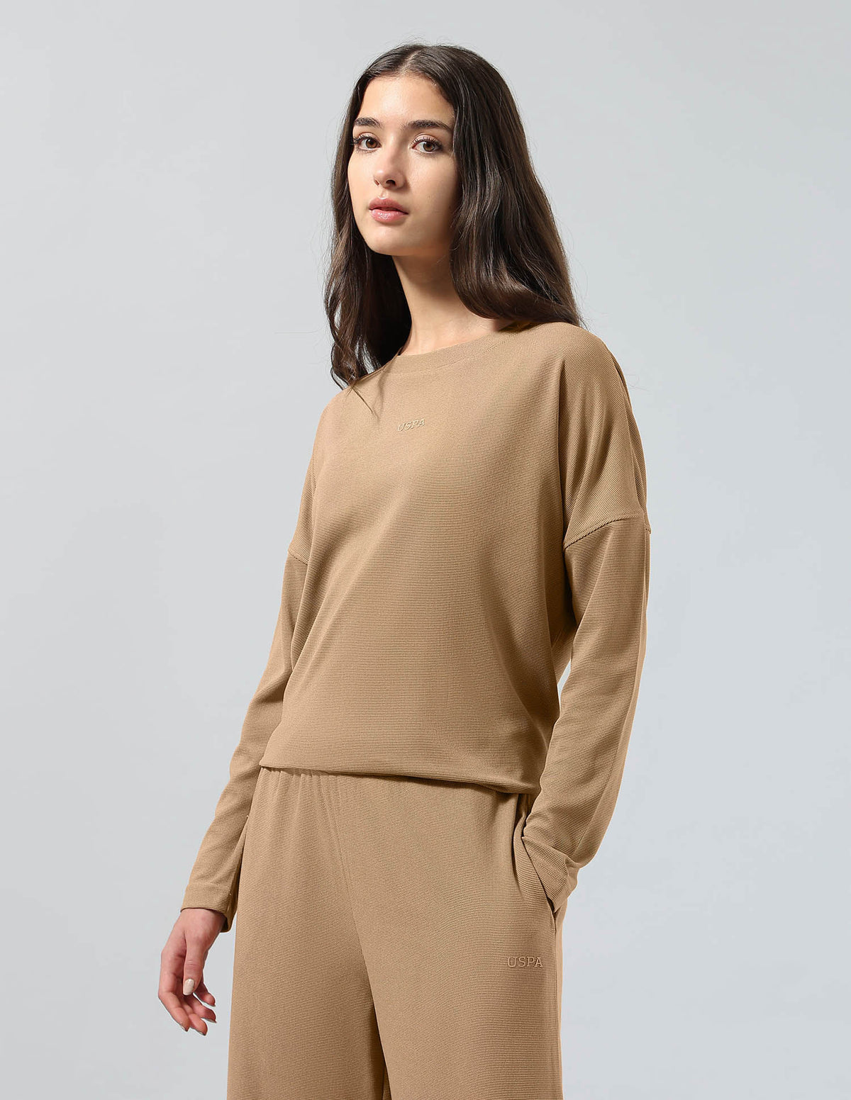 | Ribbed crew neck | Logo at chest | Long sleeves | Straight hemline | Textured pattern | Knitted | Relaxed fit |