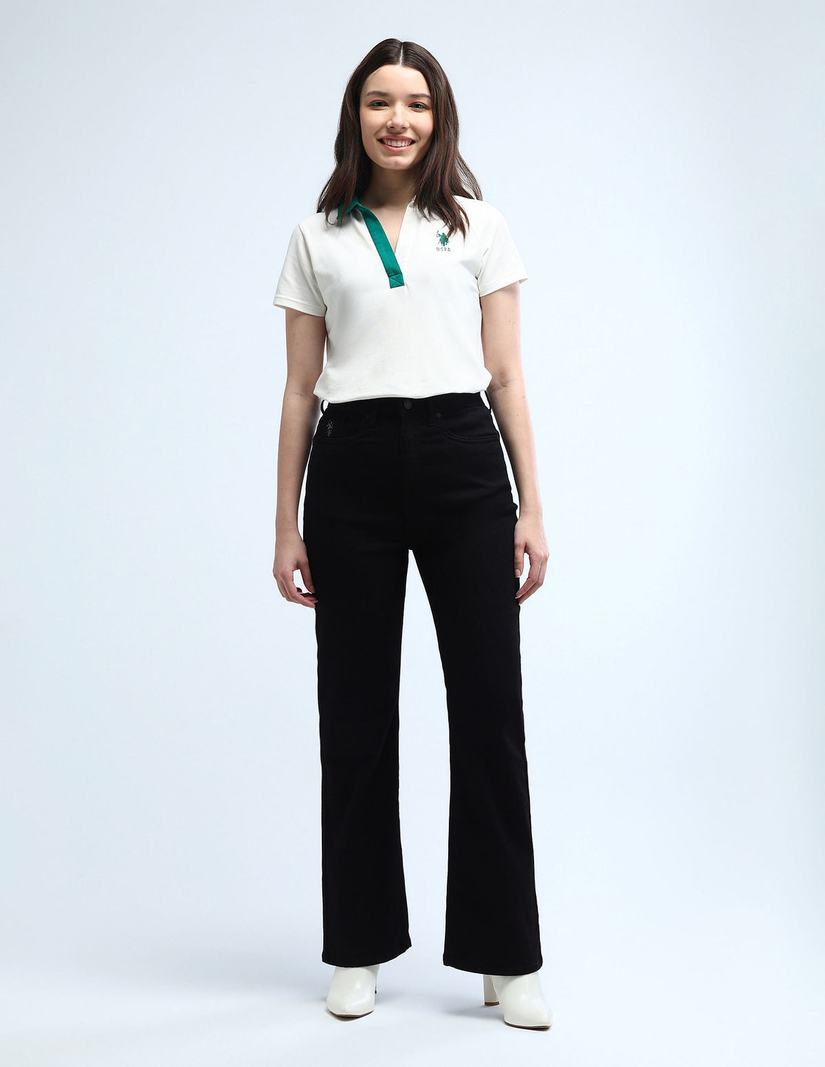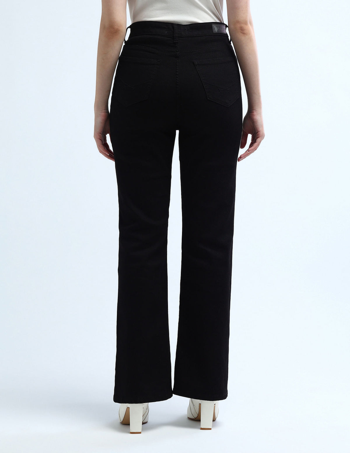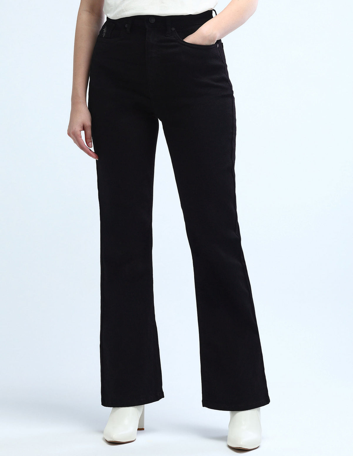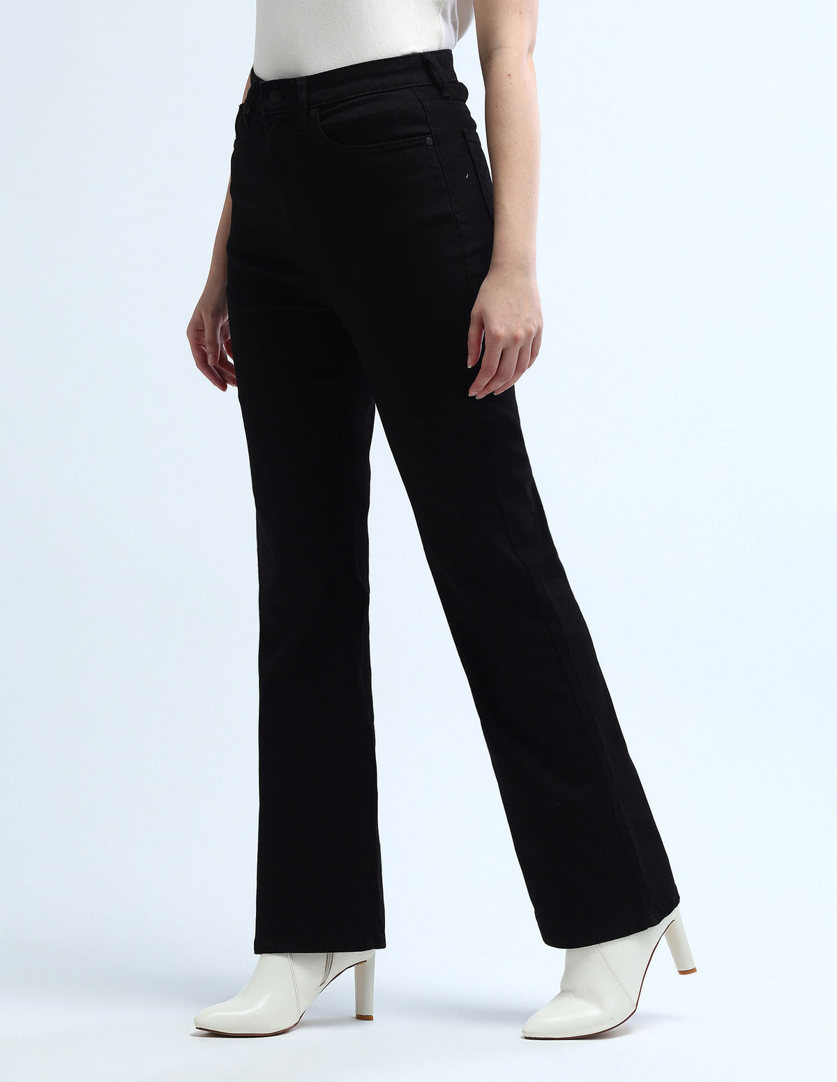 | Ultra high-rise waist | Button and zip fly closure | Five pockets | Clean look | Floor length | Twill weave | Bootcut