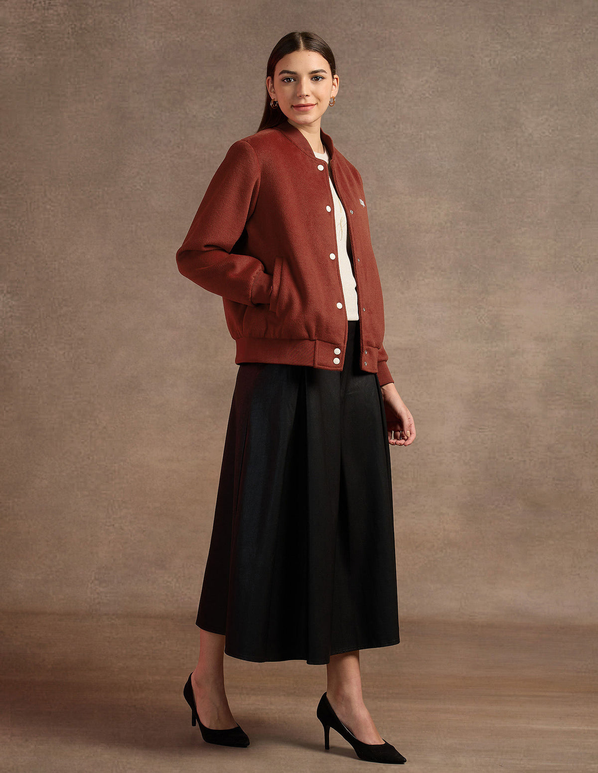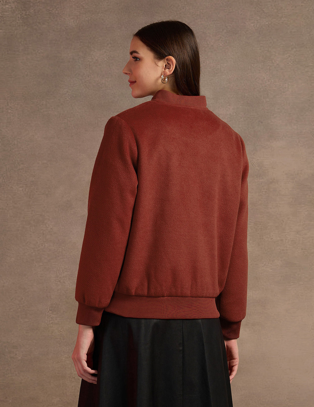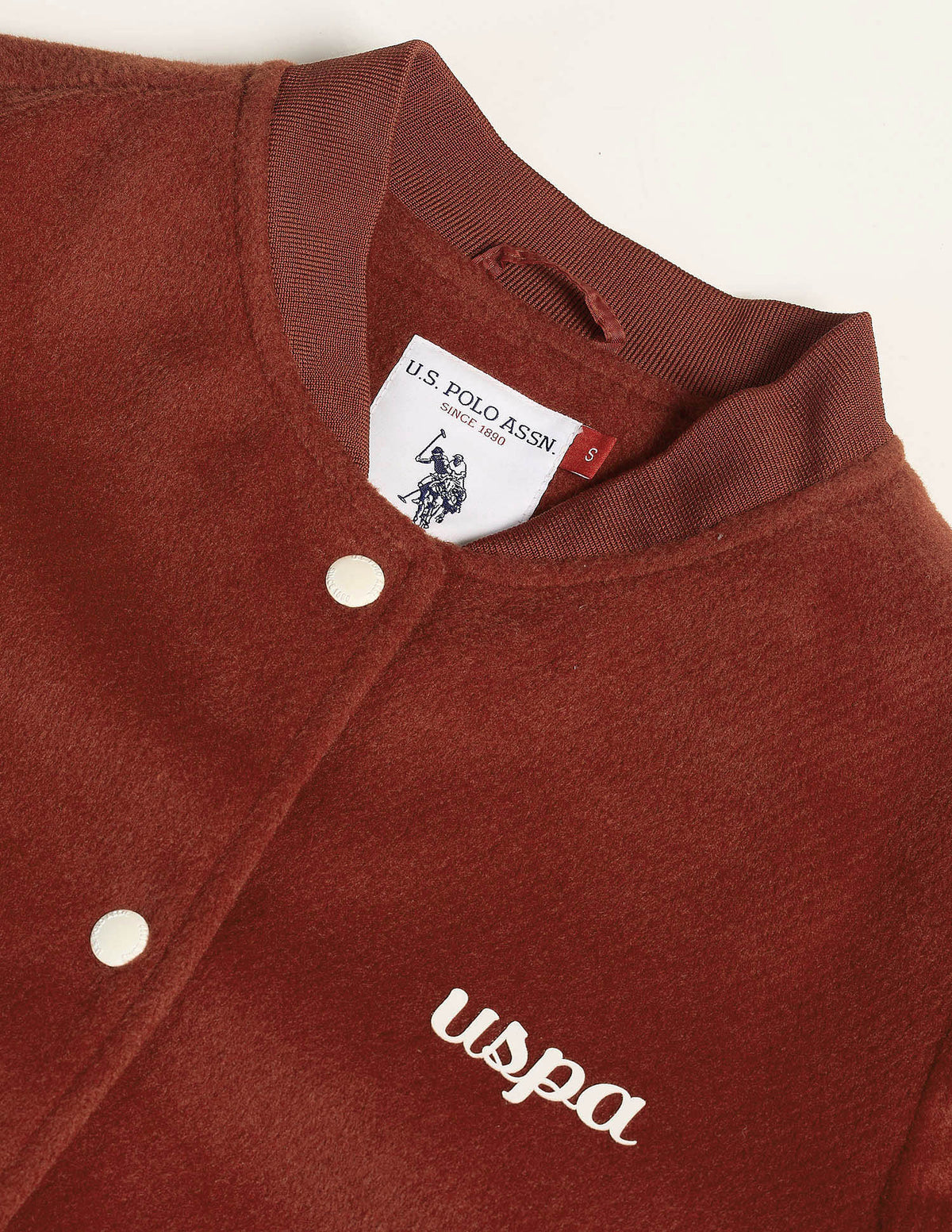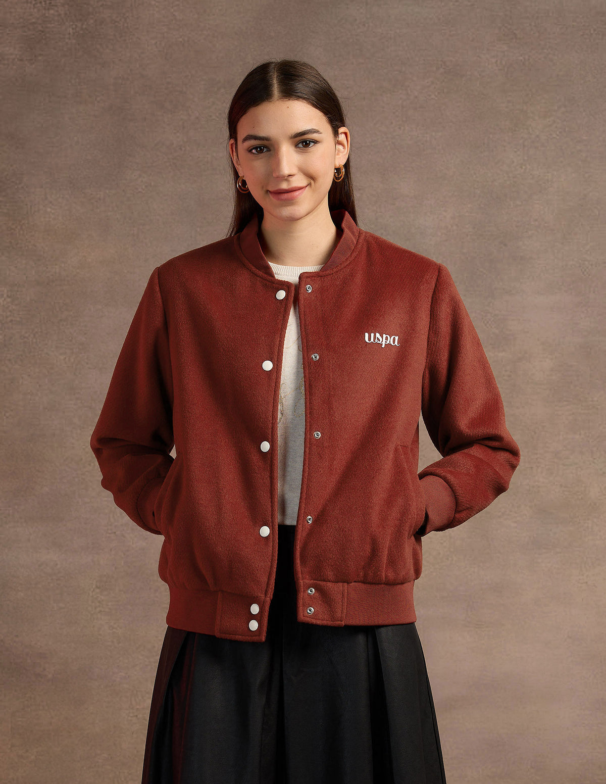 | Stand neck | Logo at chest | Full button closure | Long sleeves | Ribbed sleeve hems and hemline | Two pockets | Solid pattern |