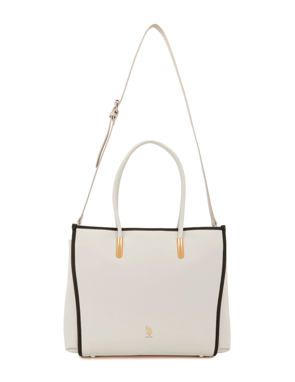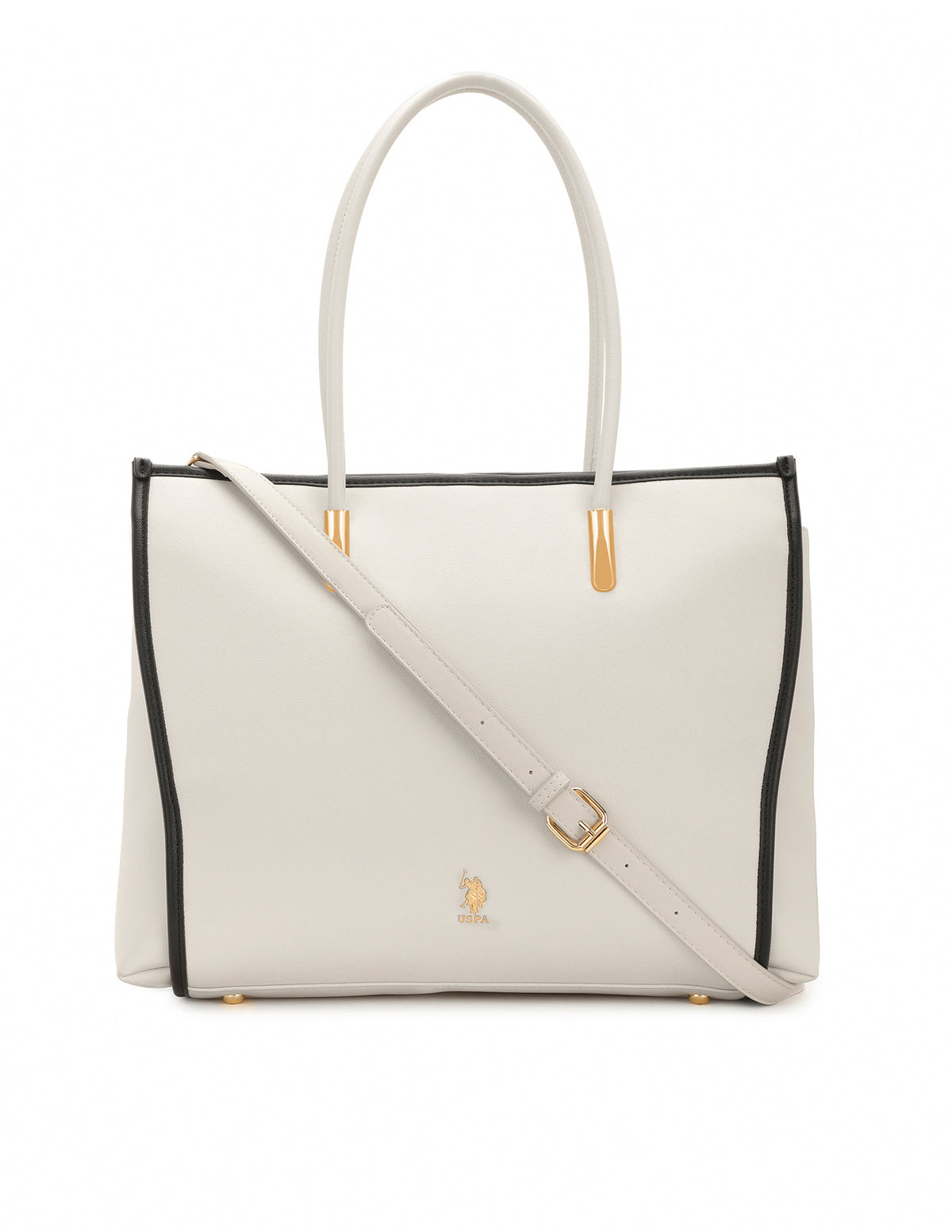 - Top handles with detachable strap
