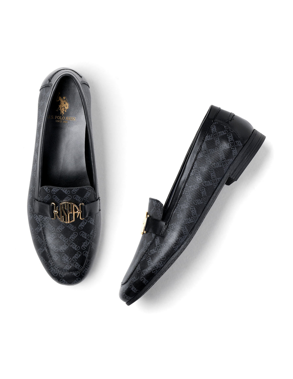 | Round toe | Panelled upper with metallic logo | Padded top line | Reinforced heel counter | Cushioned insole | Textured outsole | Printed pattern |