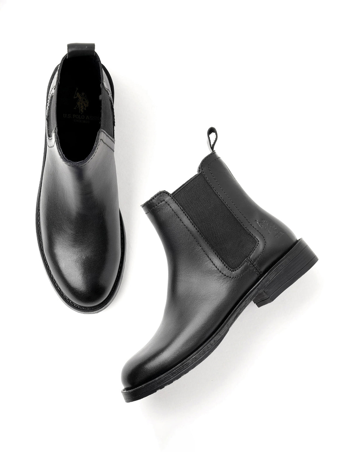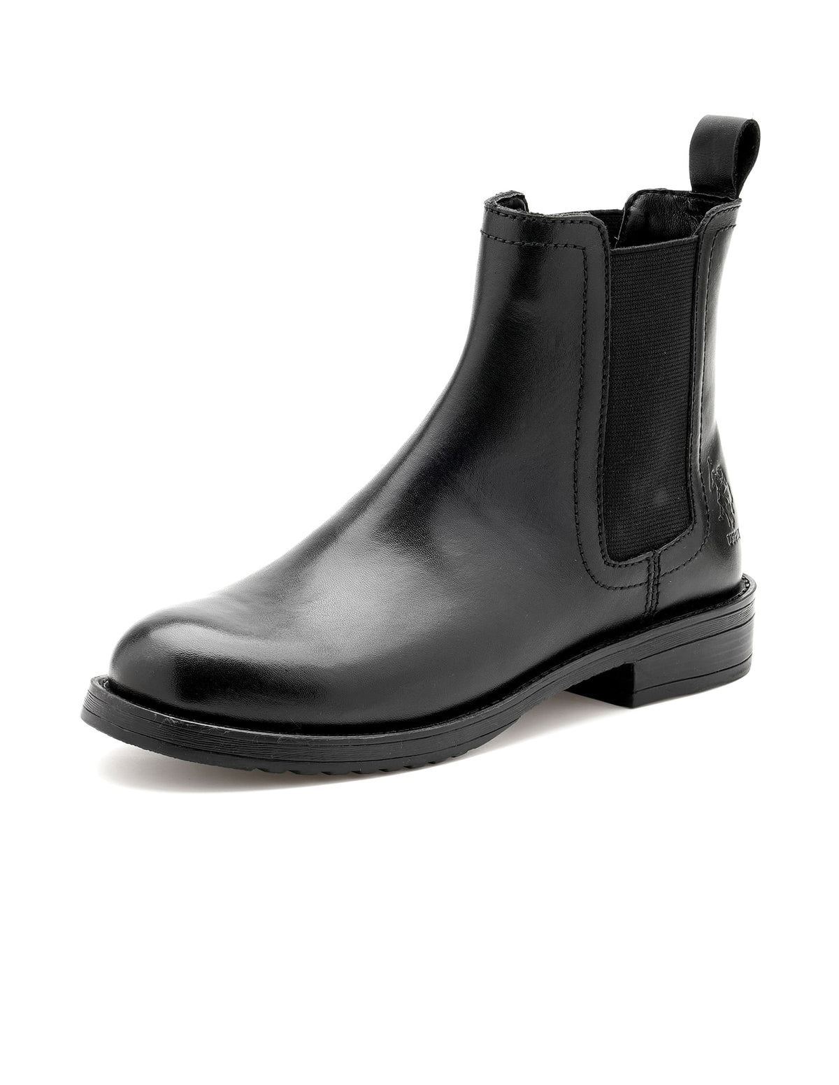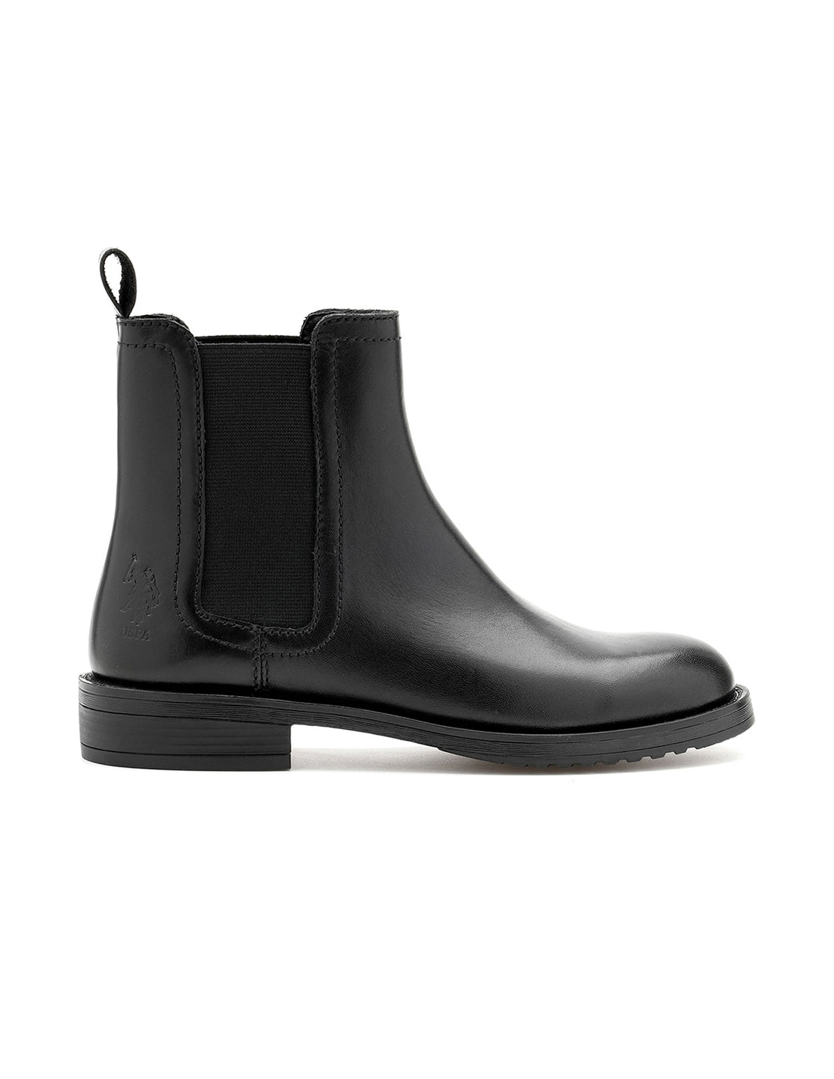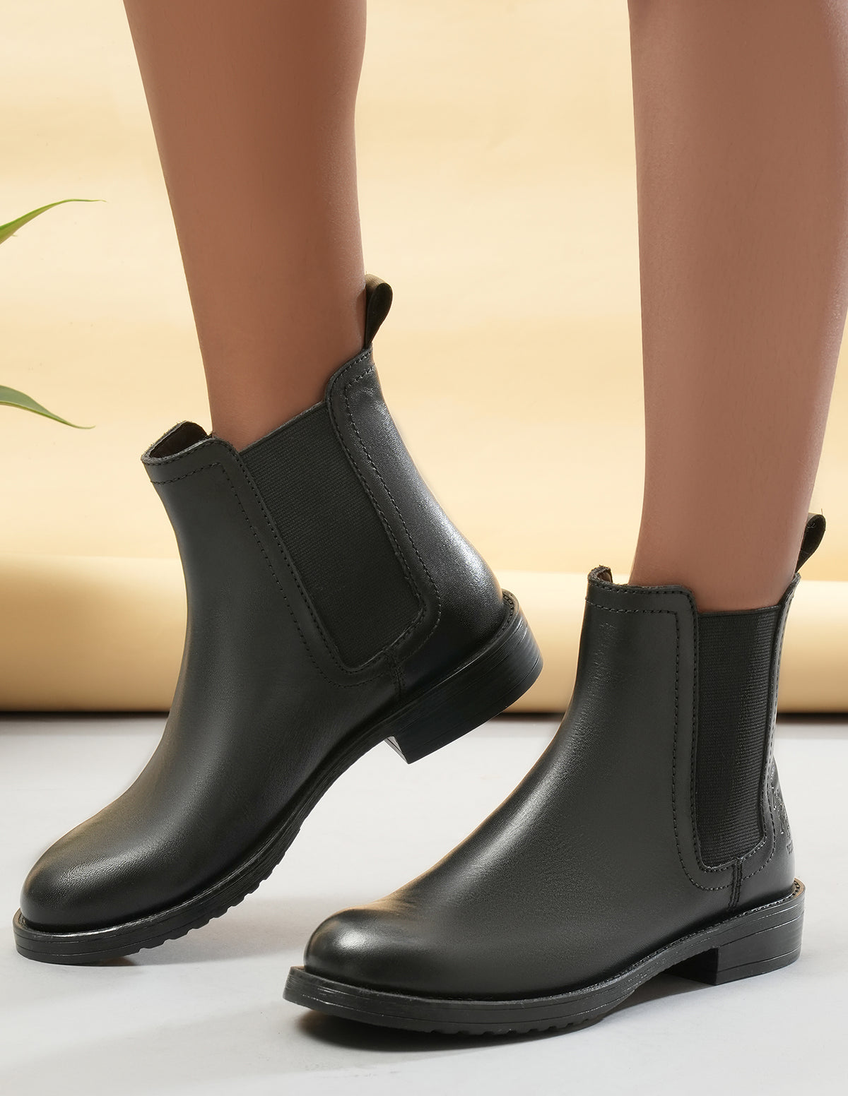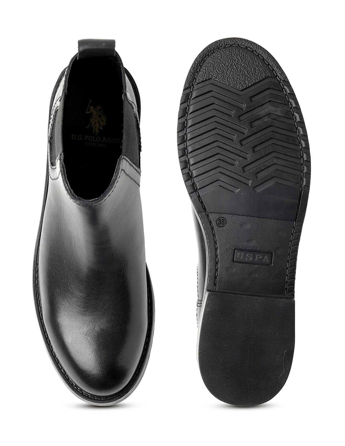| Round toe | High-top styling | Elasticized panel on sides | Reinforced heel counter with pull tab | Cushioned insole | Textured outsole with stacked heels | Solid pattern |