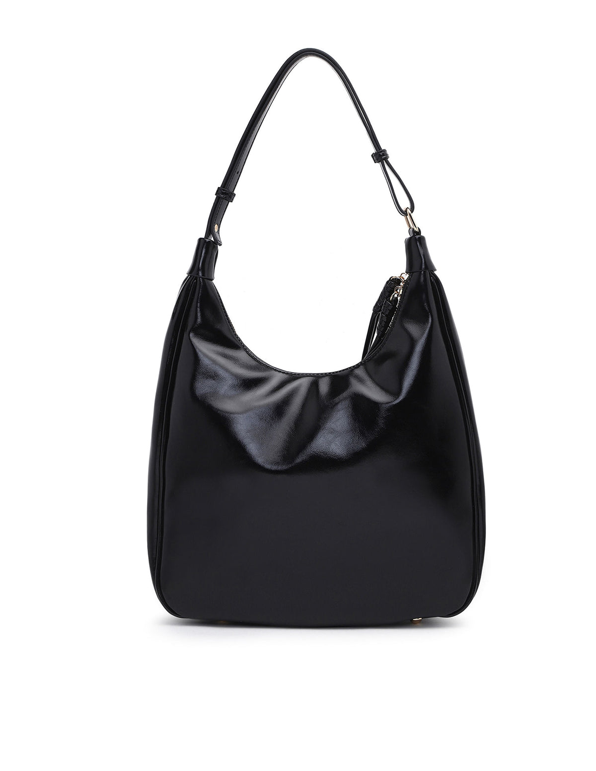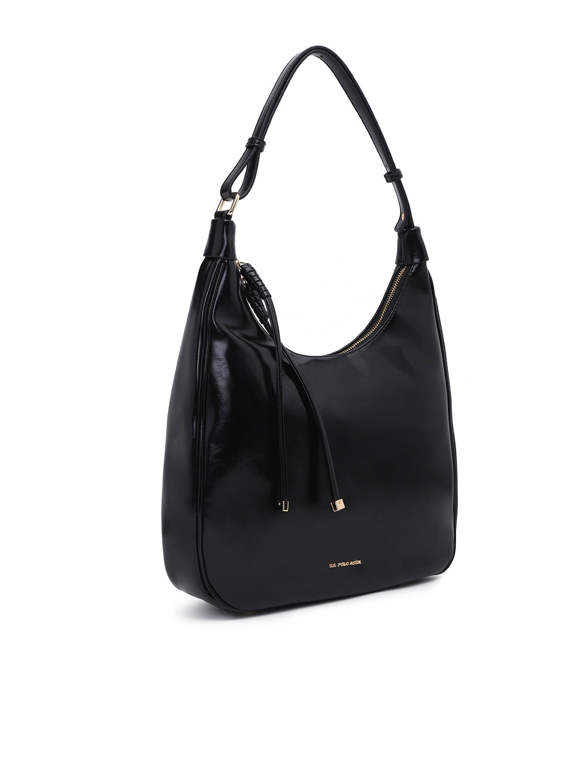 - Metallic monogram accent at front