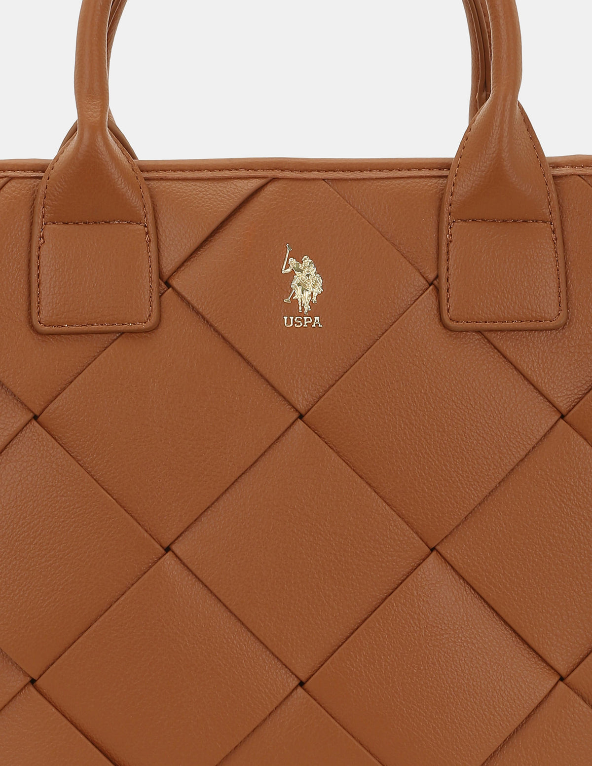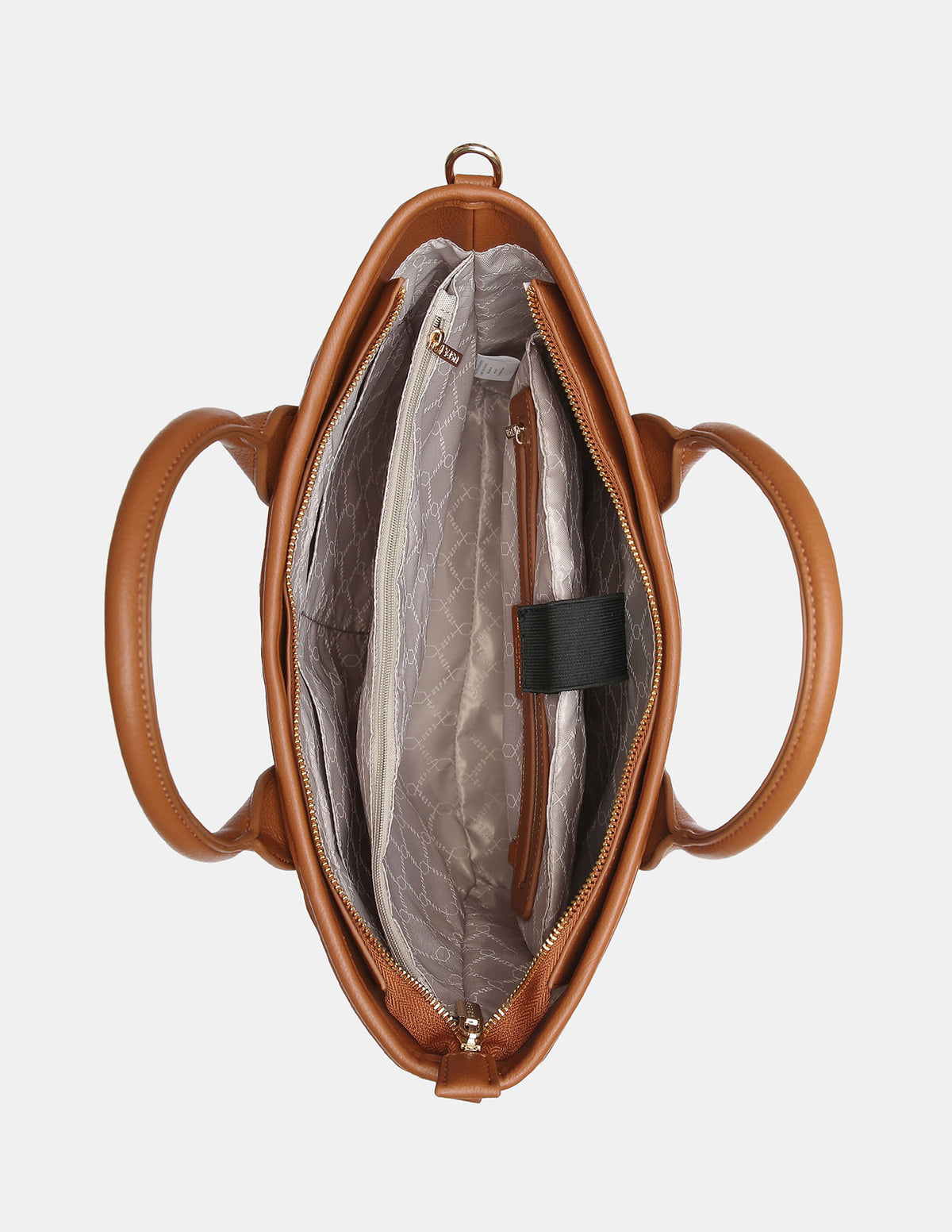 - Adjustable and detachable shoulder strap Metallic monogram accent at front