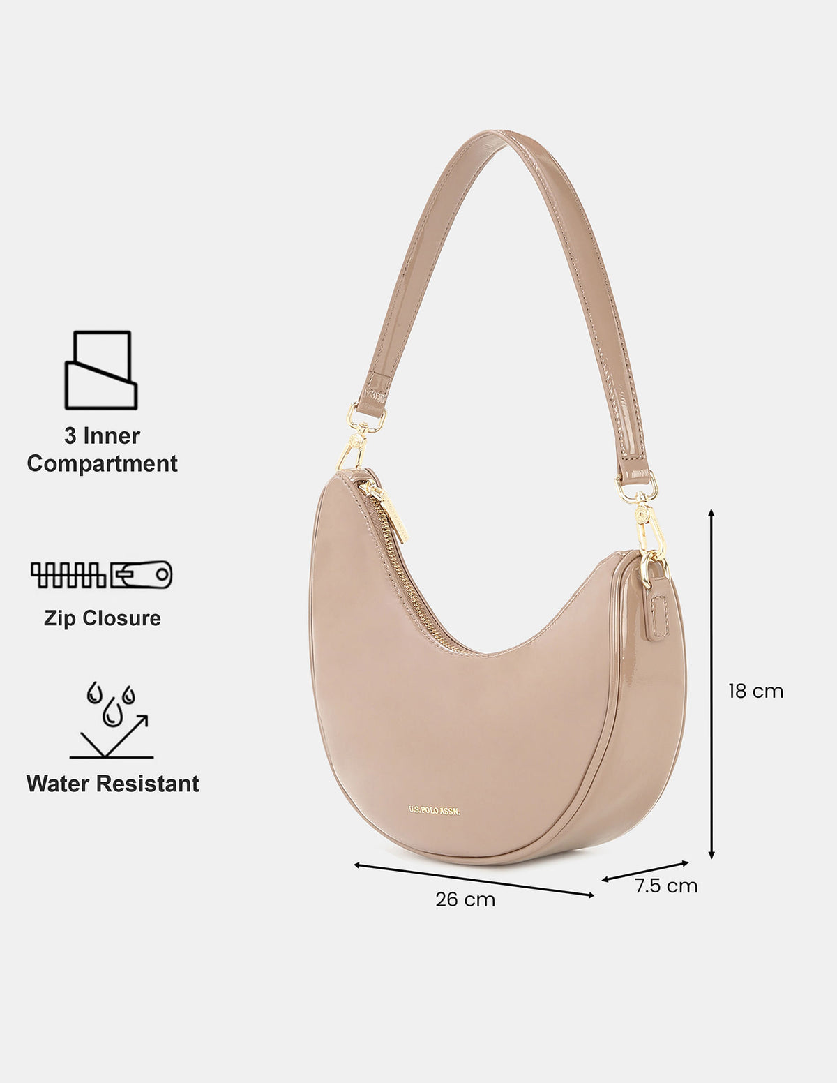 Women Belle Half-Moon Shoulder Bag with Patent Finish