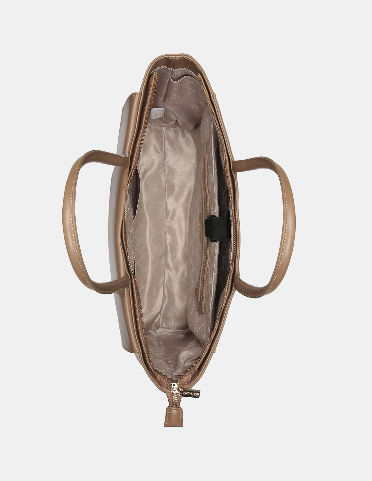 - Metallic monogram accent at front