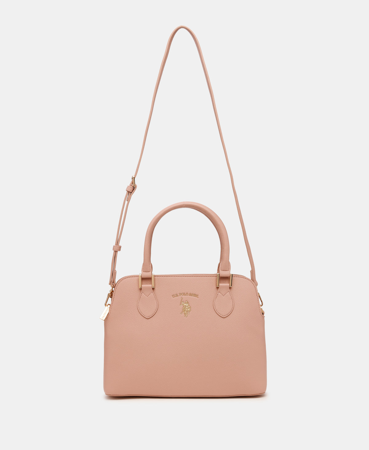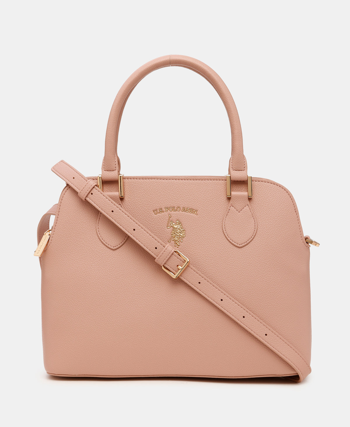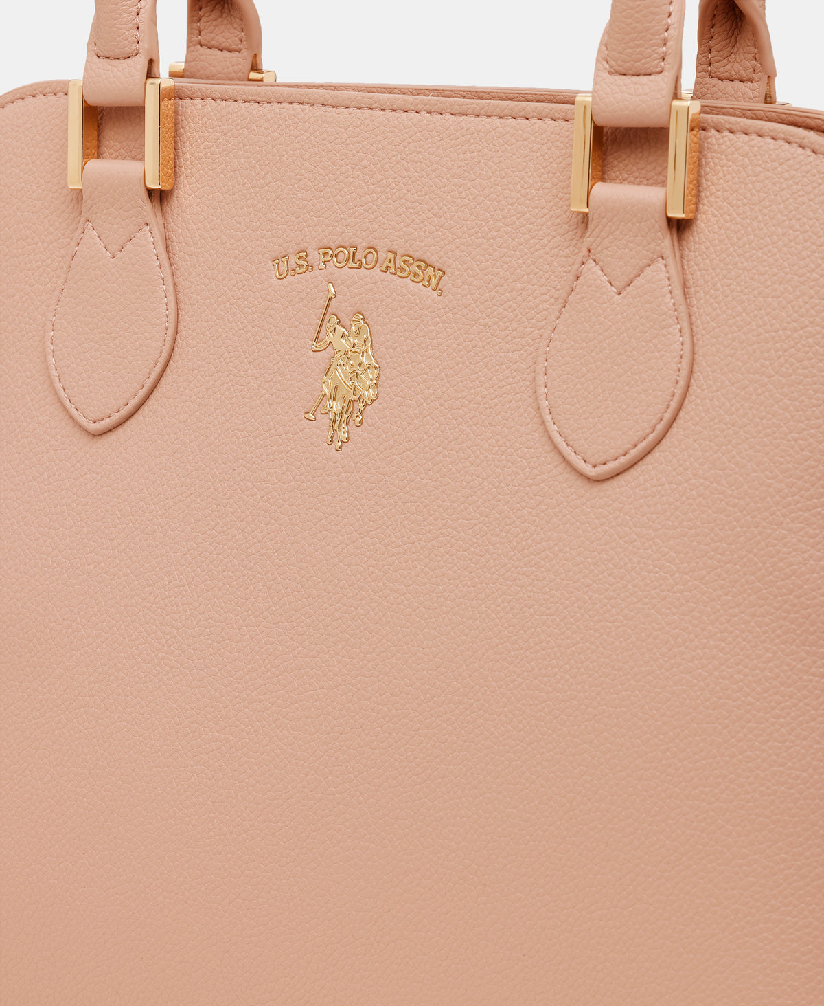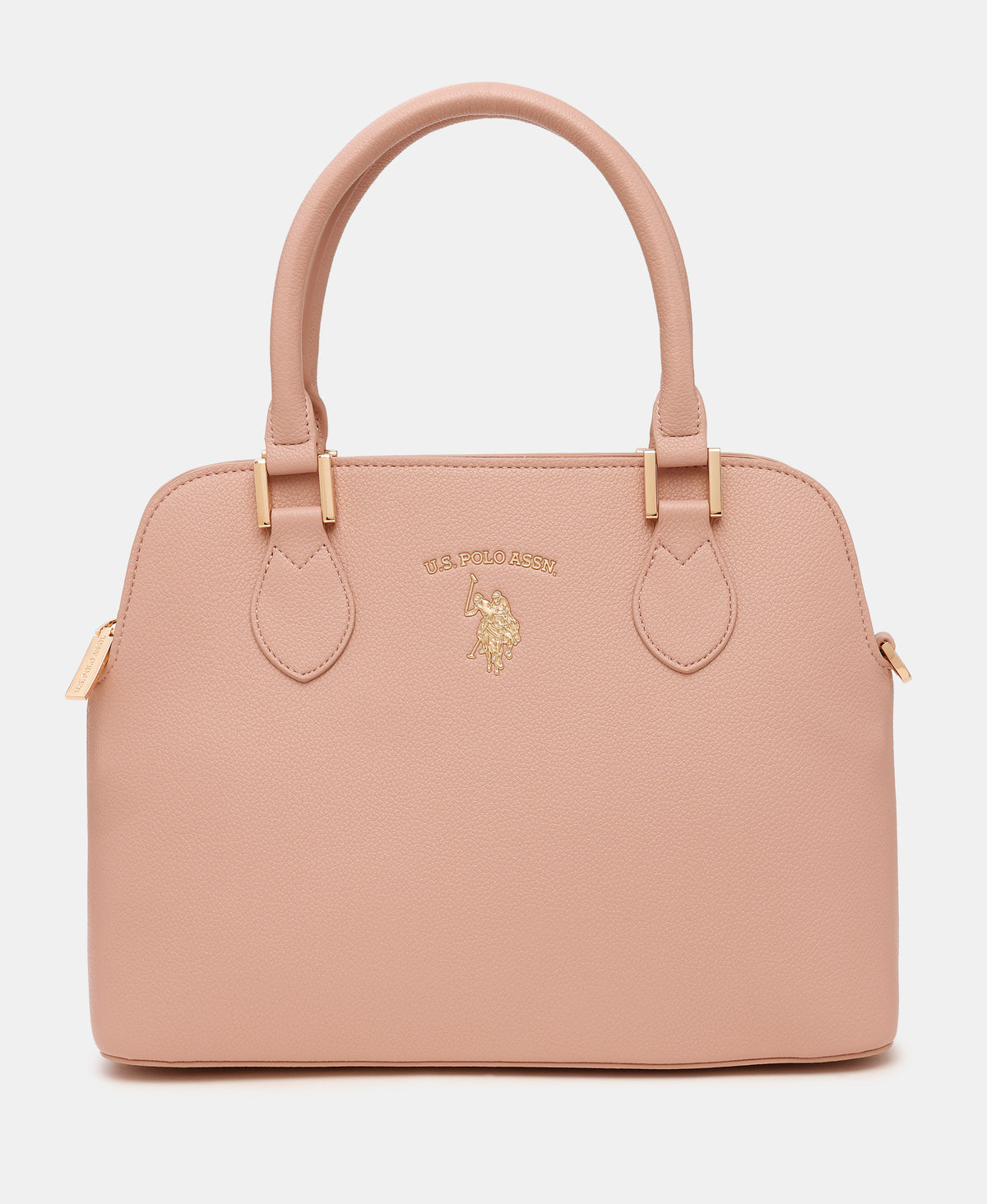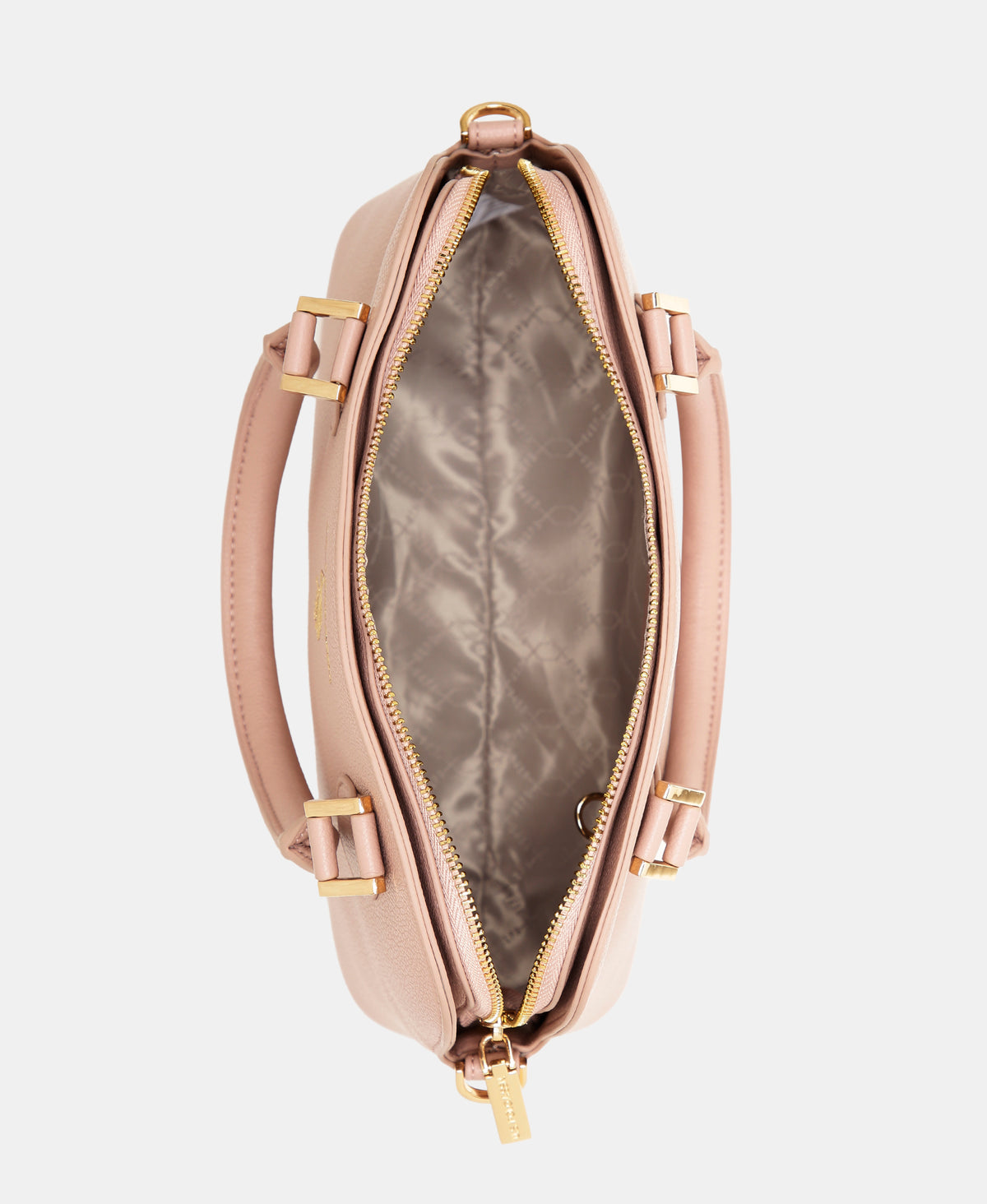 - Metallic monogram accent at front