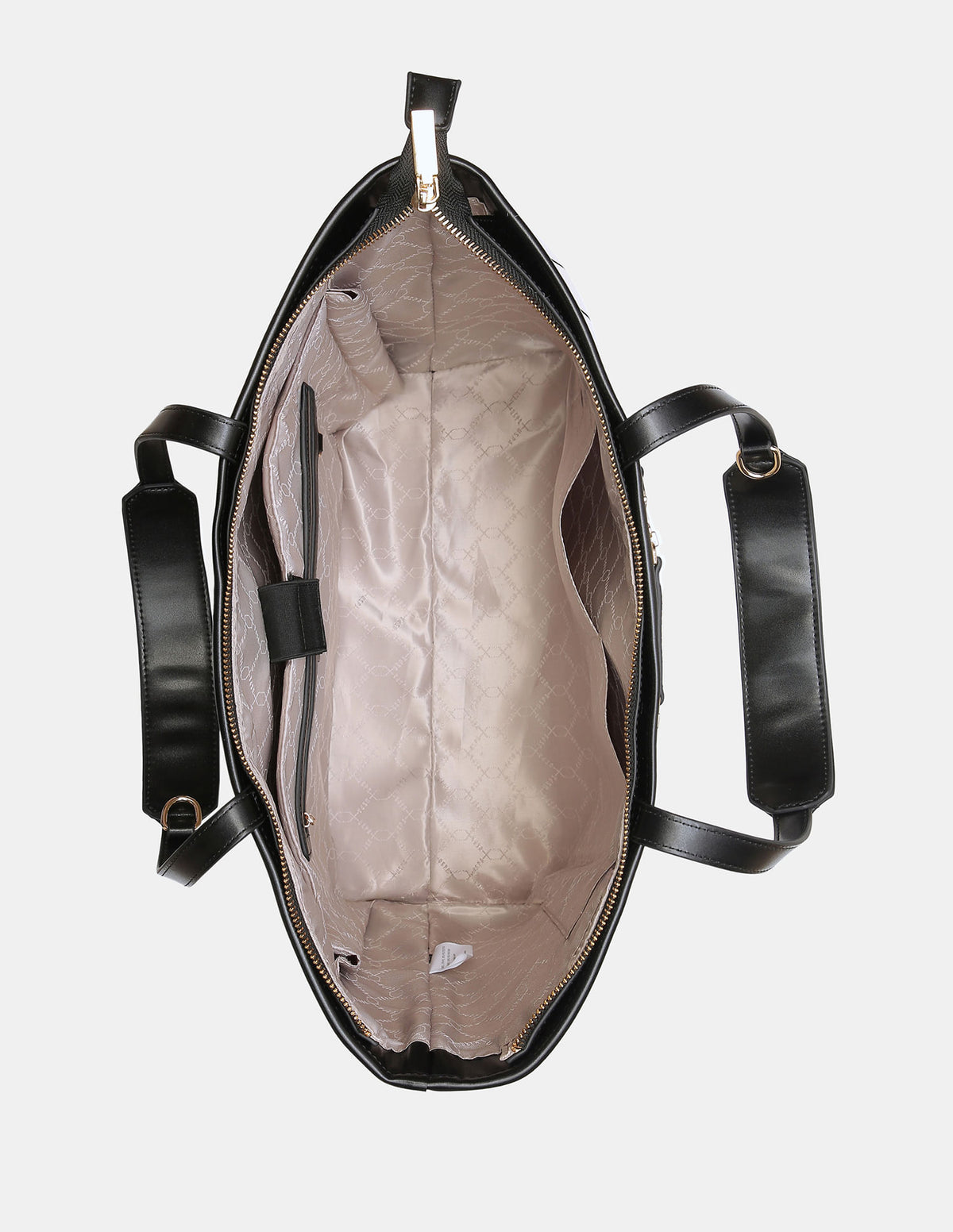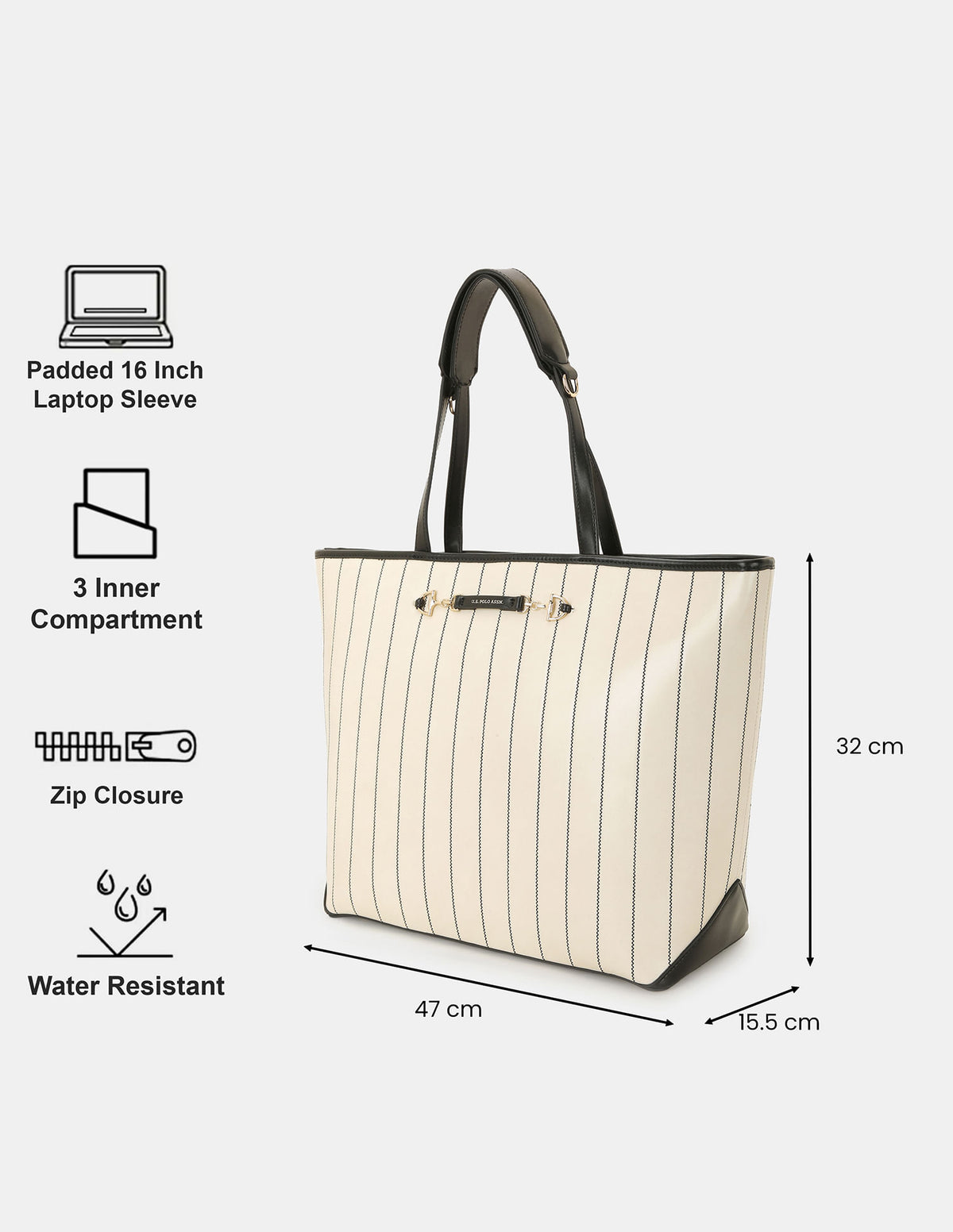 - Metallic monogram accent at front
