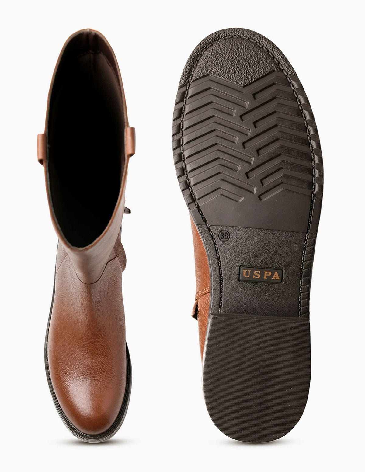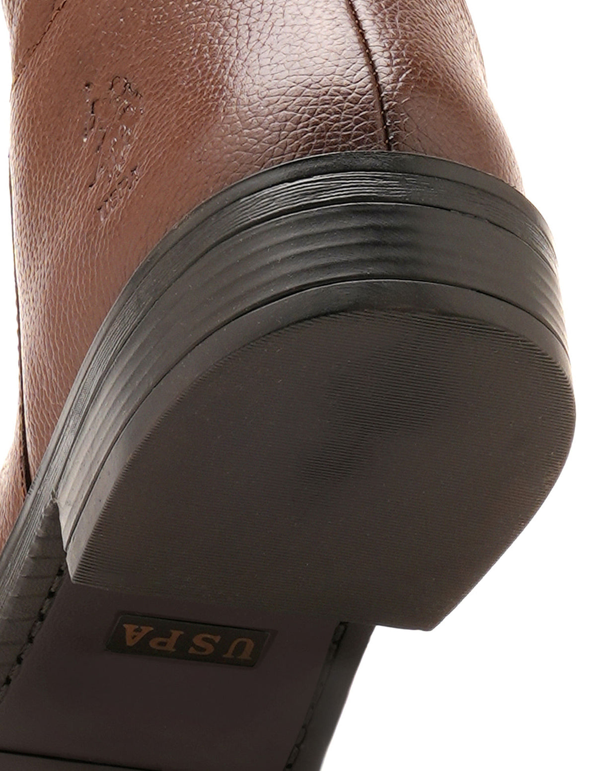 | Round toe | High-top styling | Zip closure on side | Reinforced heel counter with pull tab | Cushioned insole | Textured outsole with stacked heels | Solid pattern |