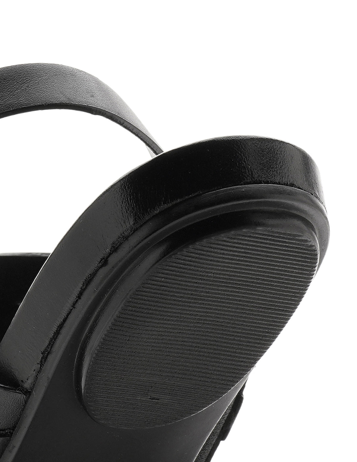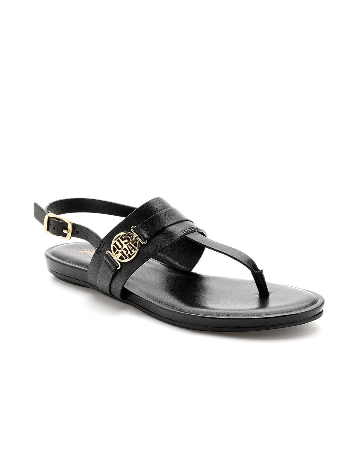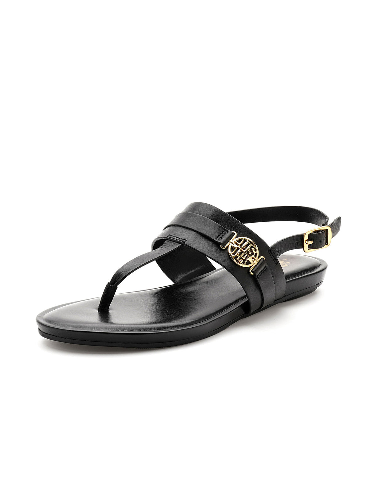 | Toe separator | Buckle closure at the back | Vamp strap with brand metallic accent | Cushion footbed with branding | Striped outsole | Solid pattern |