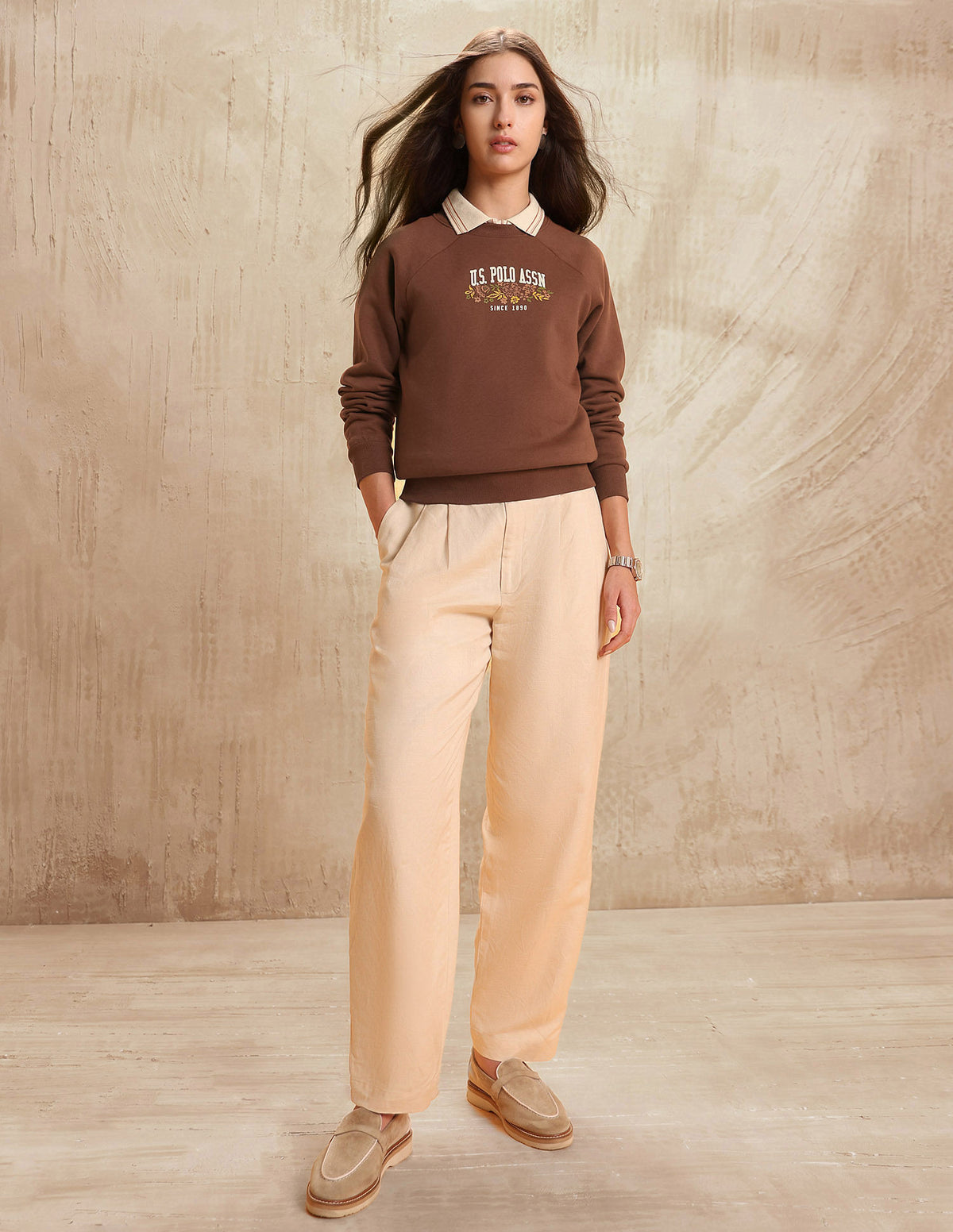 Story: Reimagining classic Western aesthetics, this group channels rugged looks with utilitarian details, energized by earthy colors. Drawing inspiration from nature’s ruggedness along with equestrian influences, it infuses a sense of adventure and functionality into the U.S. Polo Assn. brand. intermingle with textural fabrics to evoke the rugged beauty of the landscape. Integrating elements that evoke the sport of polo adds an athletic edge to the energetic charm, creating a dynamic fusion of style and performance. An ideal choice for the fashion-forward woman who appreciates both style and comfort. Pair with your favorite jeans or a casual skirt for a look that's both polished and relaxed, ready to take on any casual occasion with confidence.