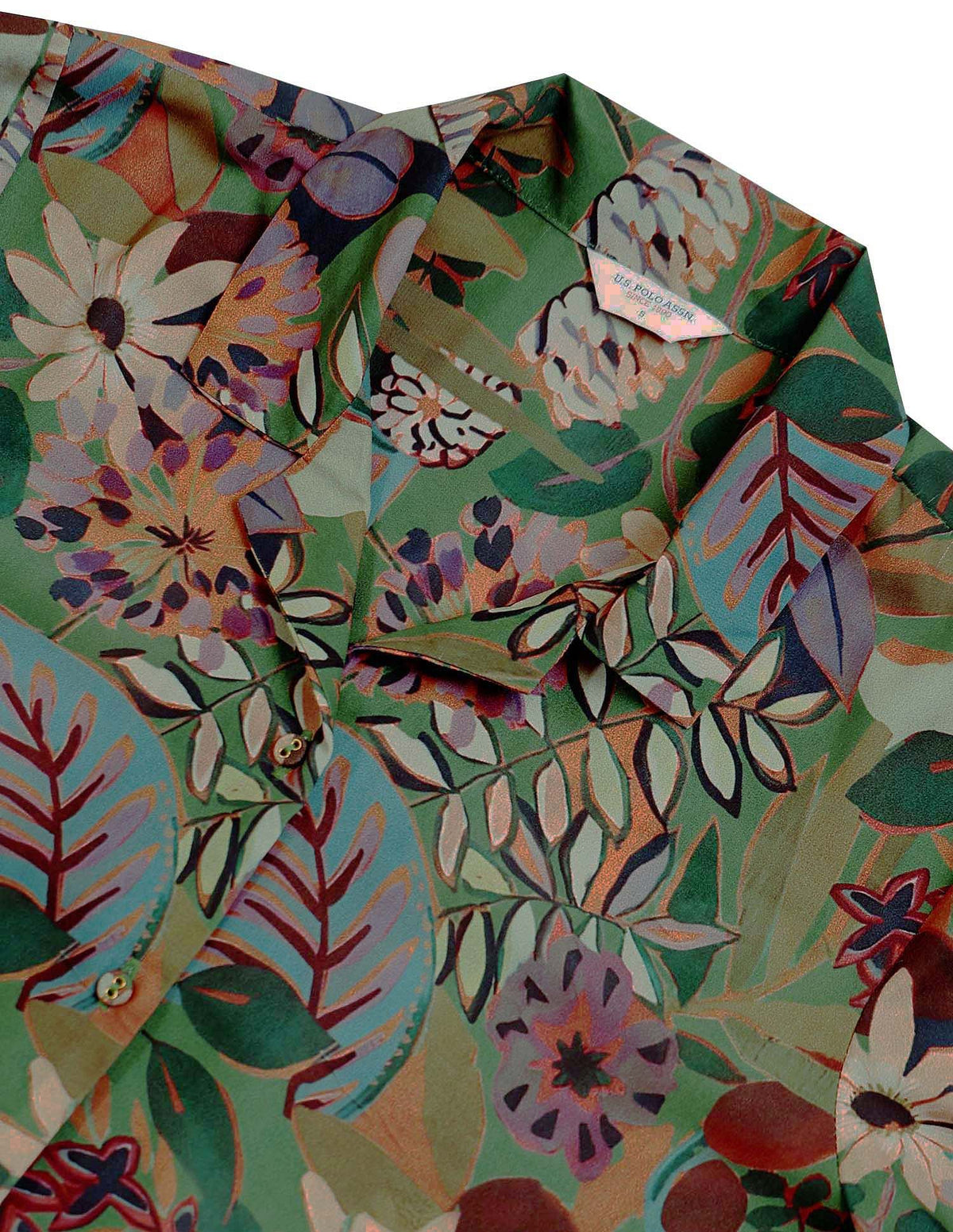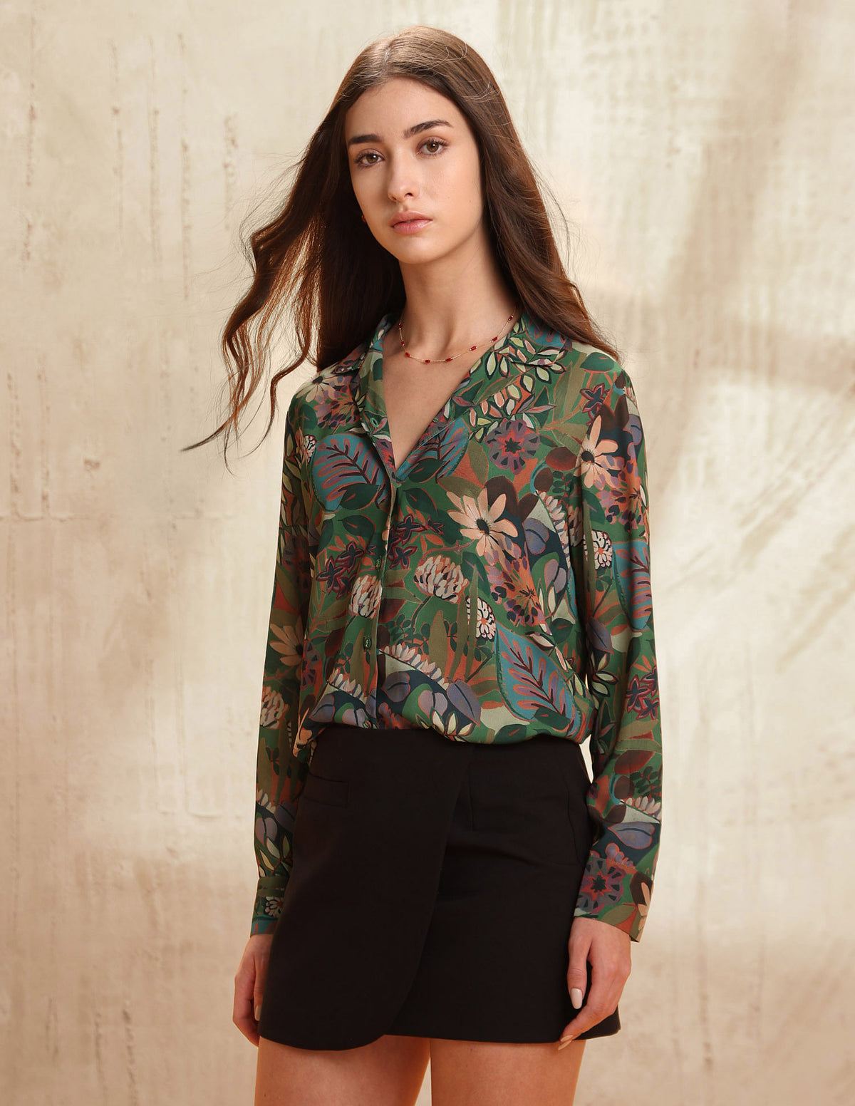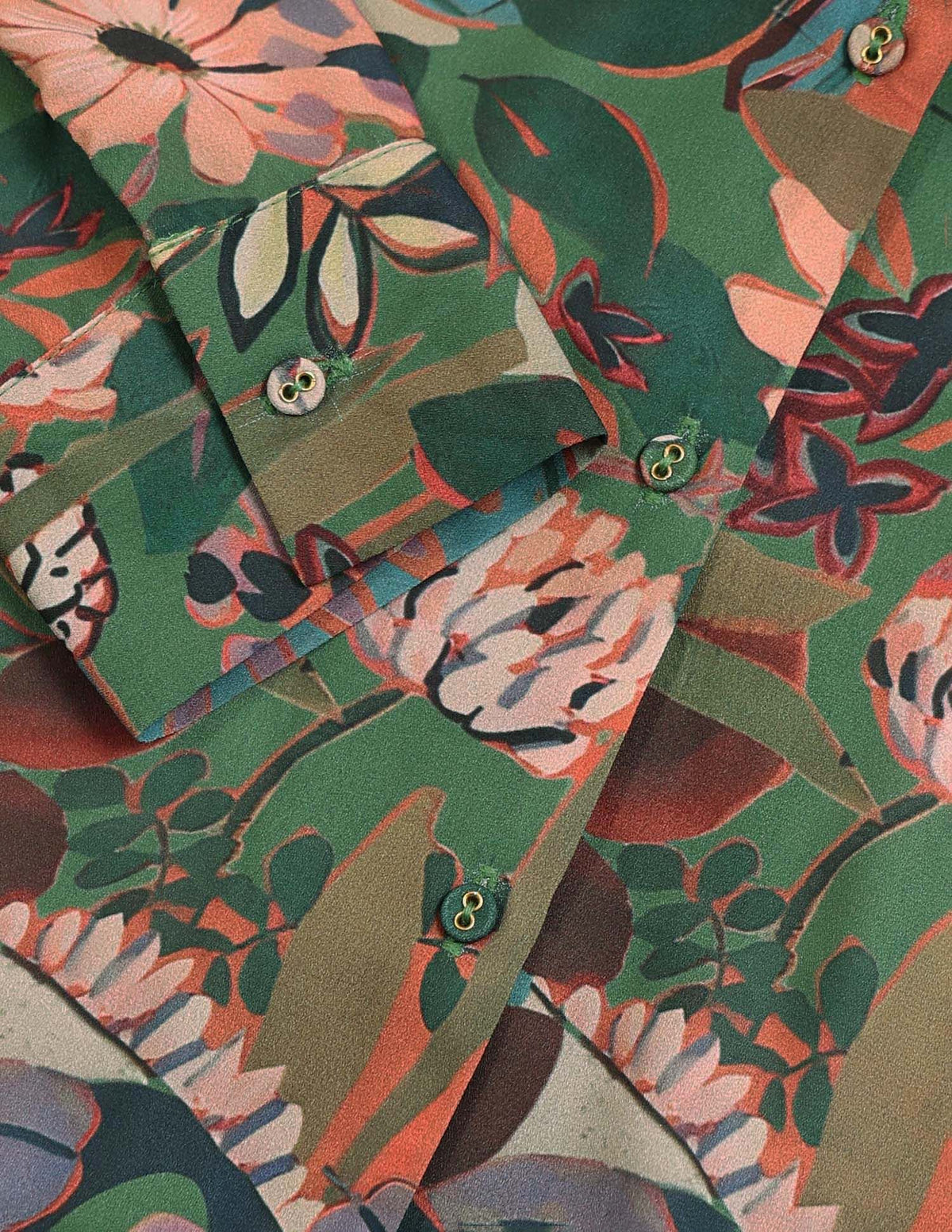 | Cuban collar | Full button placket | Long sleeves with barrel cuffs | Curved hemline | Floral printed pattern | Regular weave | Regular fit |