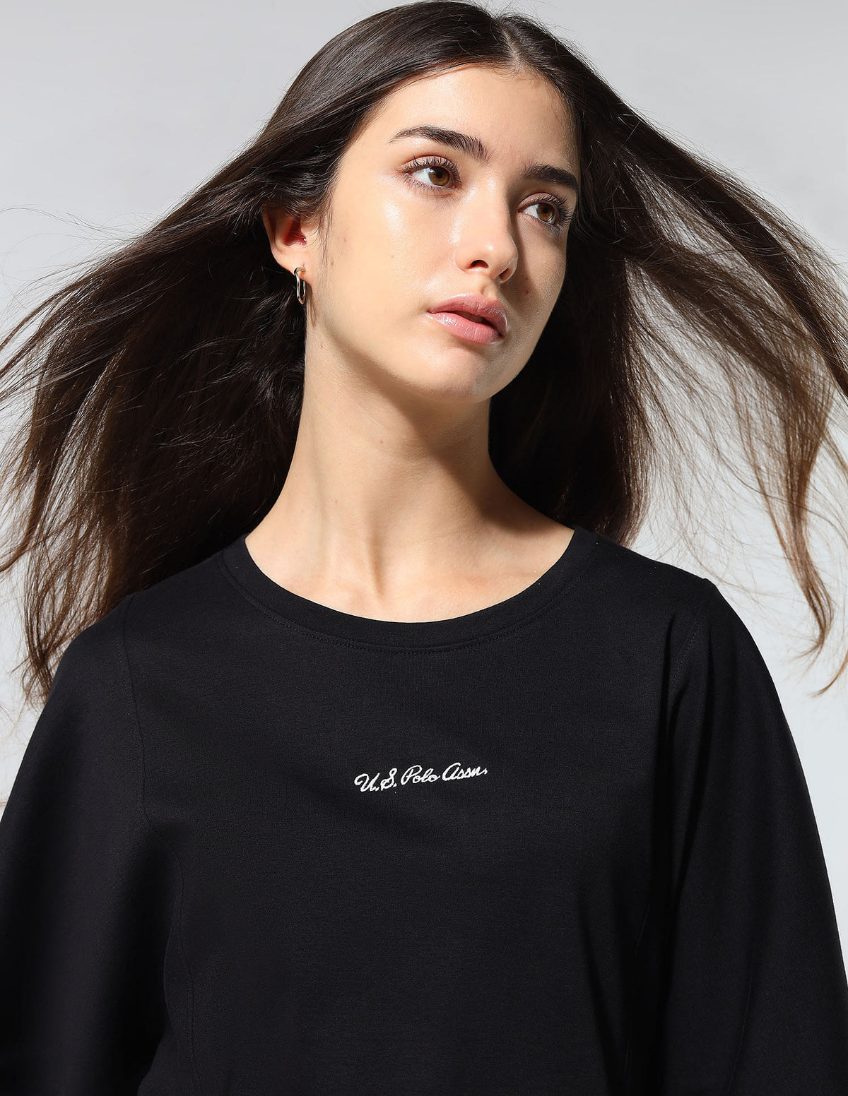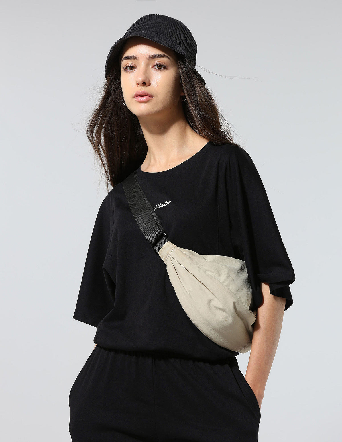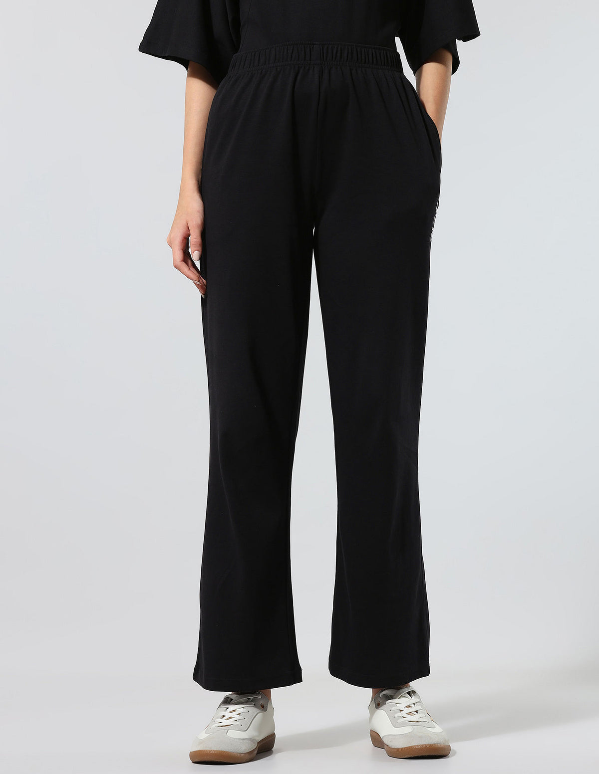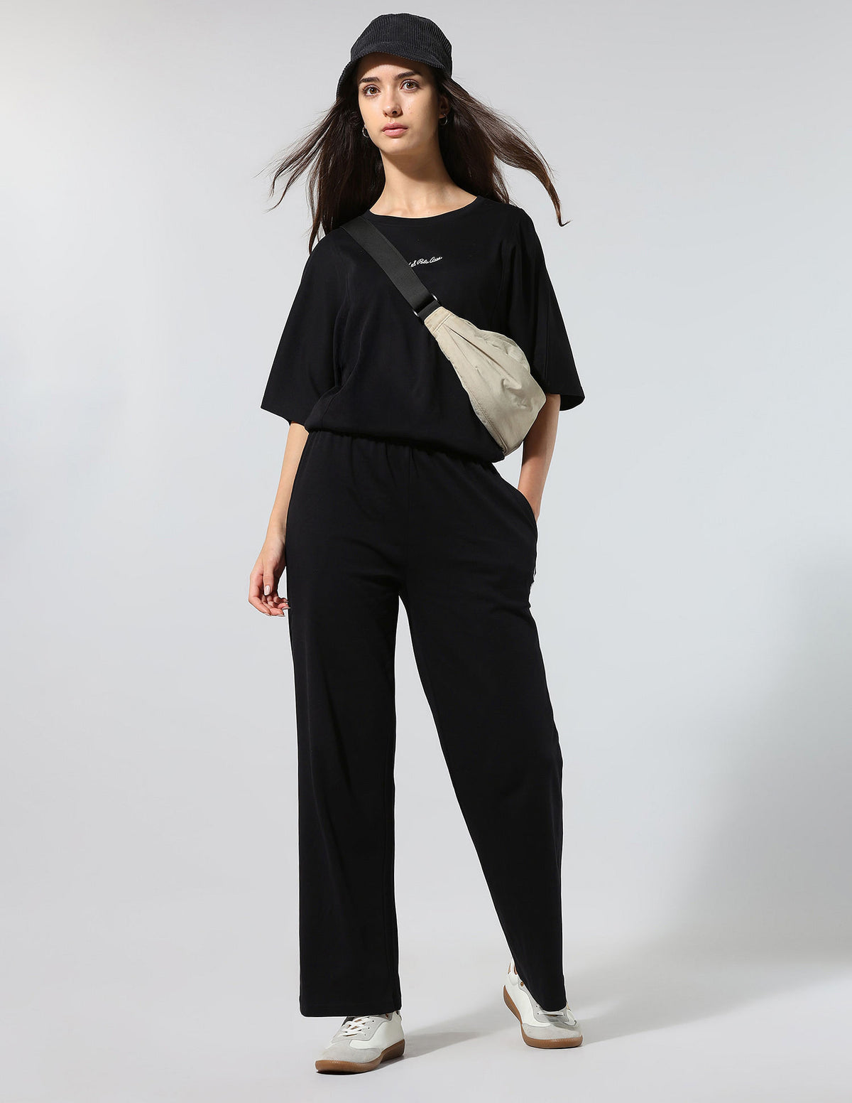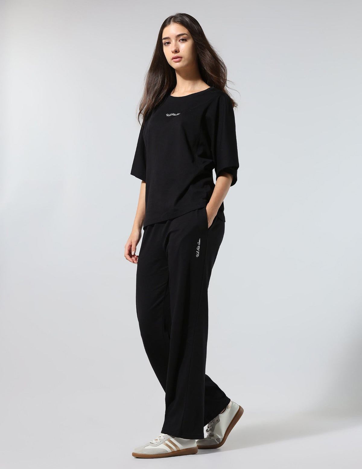 | T-shirt: | Crew neck | Logo embroidered at chest | Short sleeves | Straight hemline | Solid pattern | Trousers: | Mid-rise waist | Elasticated waistband | Two pockets | Solid pattern | Relaxed fit |